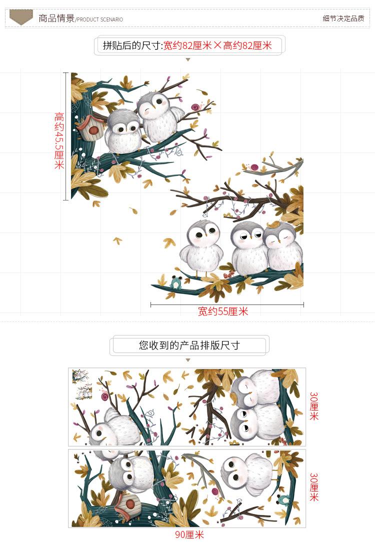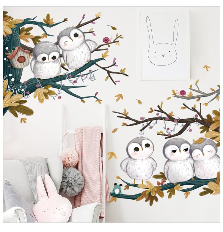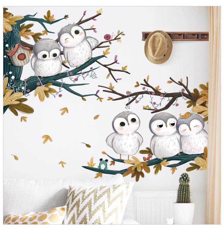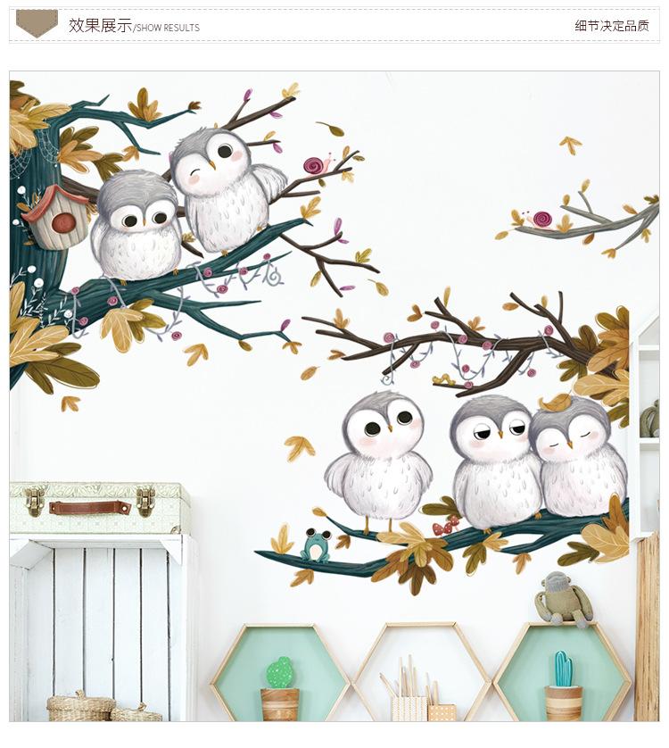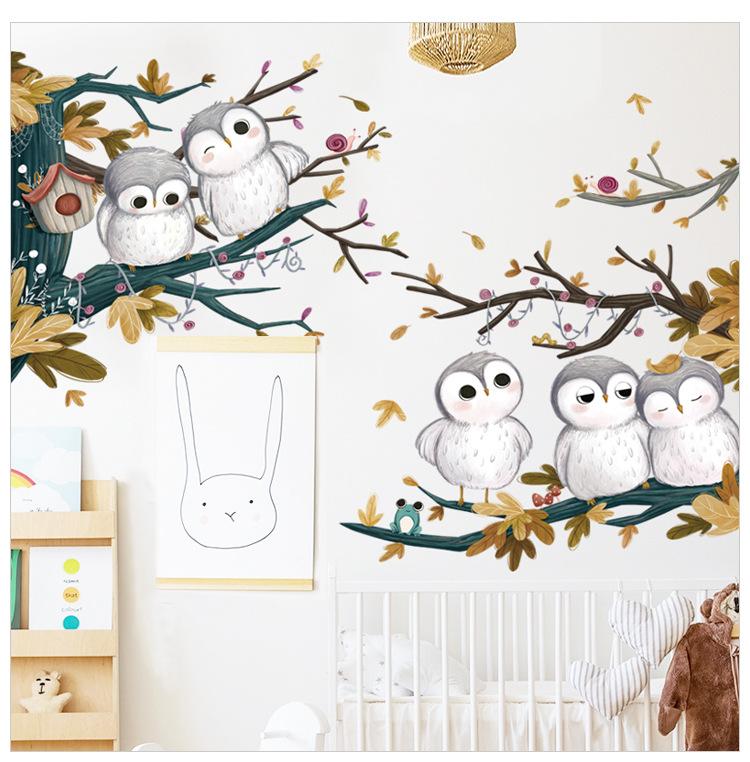 Dibujo Animado Lindo Animal Búho Diseño Calcomanía de Pared Impermeable Aula de Jardín de Niños Habitación Infantil Adhesivo Decorativo de Pared