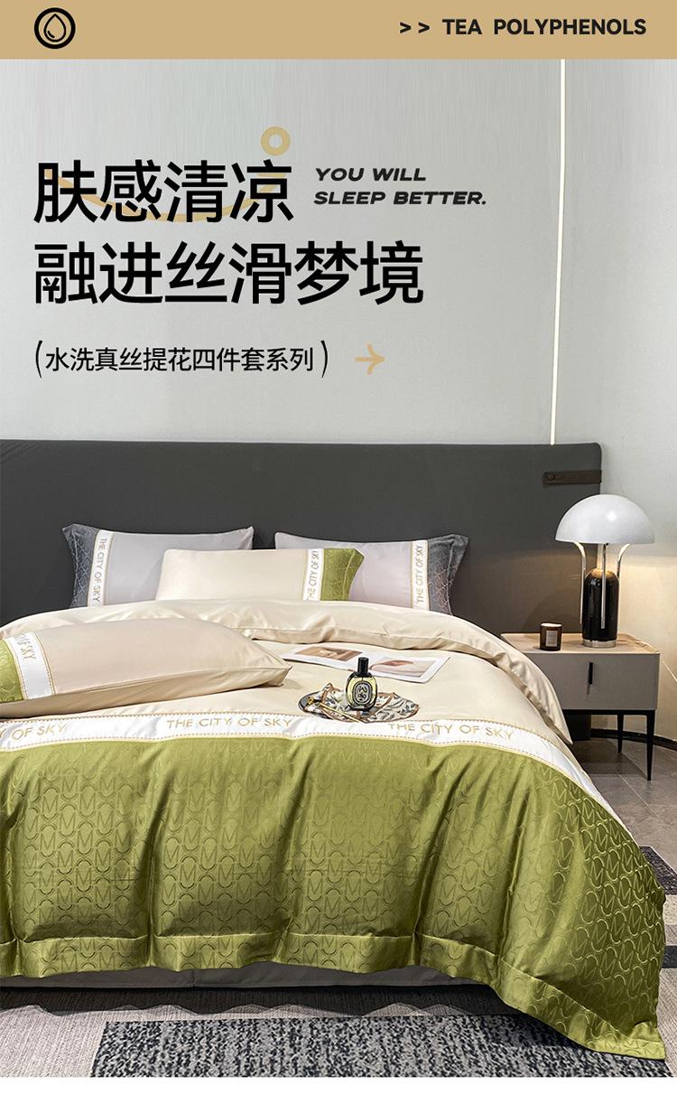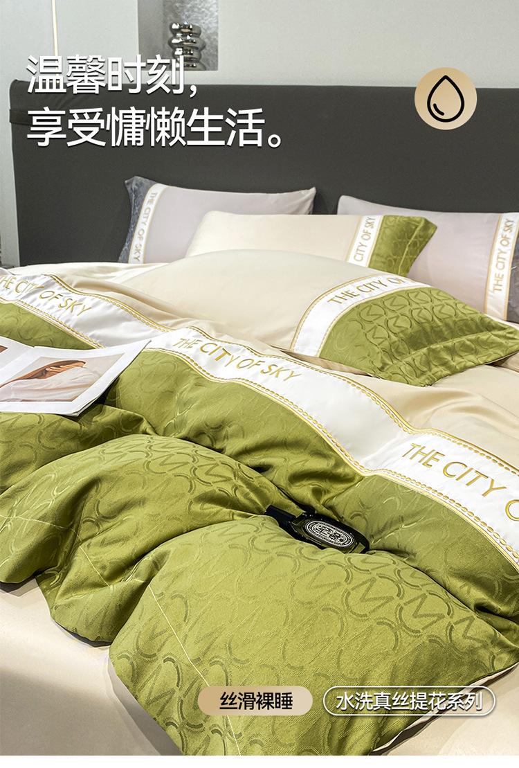 Nuevo Juego de Cuatro Piezas Jacquard de Seda de Hielo 2024 Juego de Cuatro Piezas para Cama de 1.5 m Verano Funda Nórdica de Seda Lavada Estilo Europeo