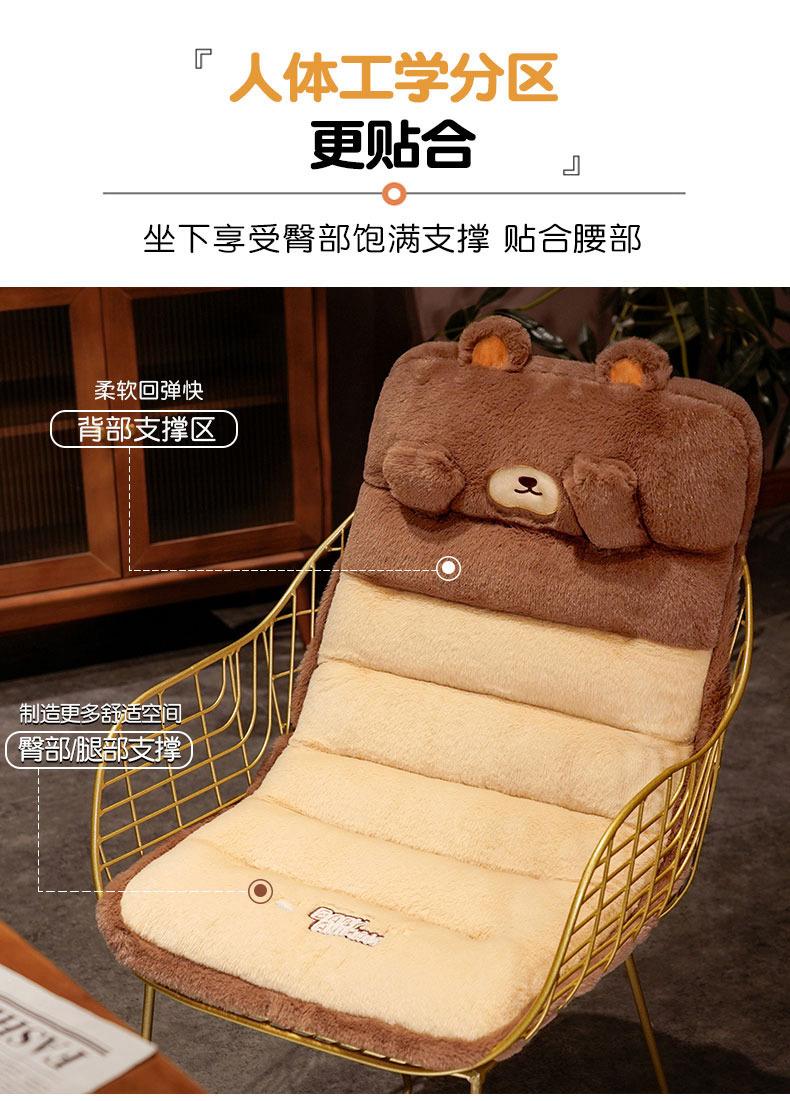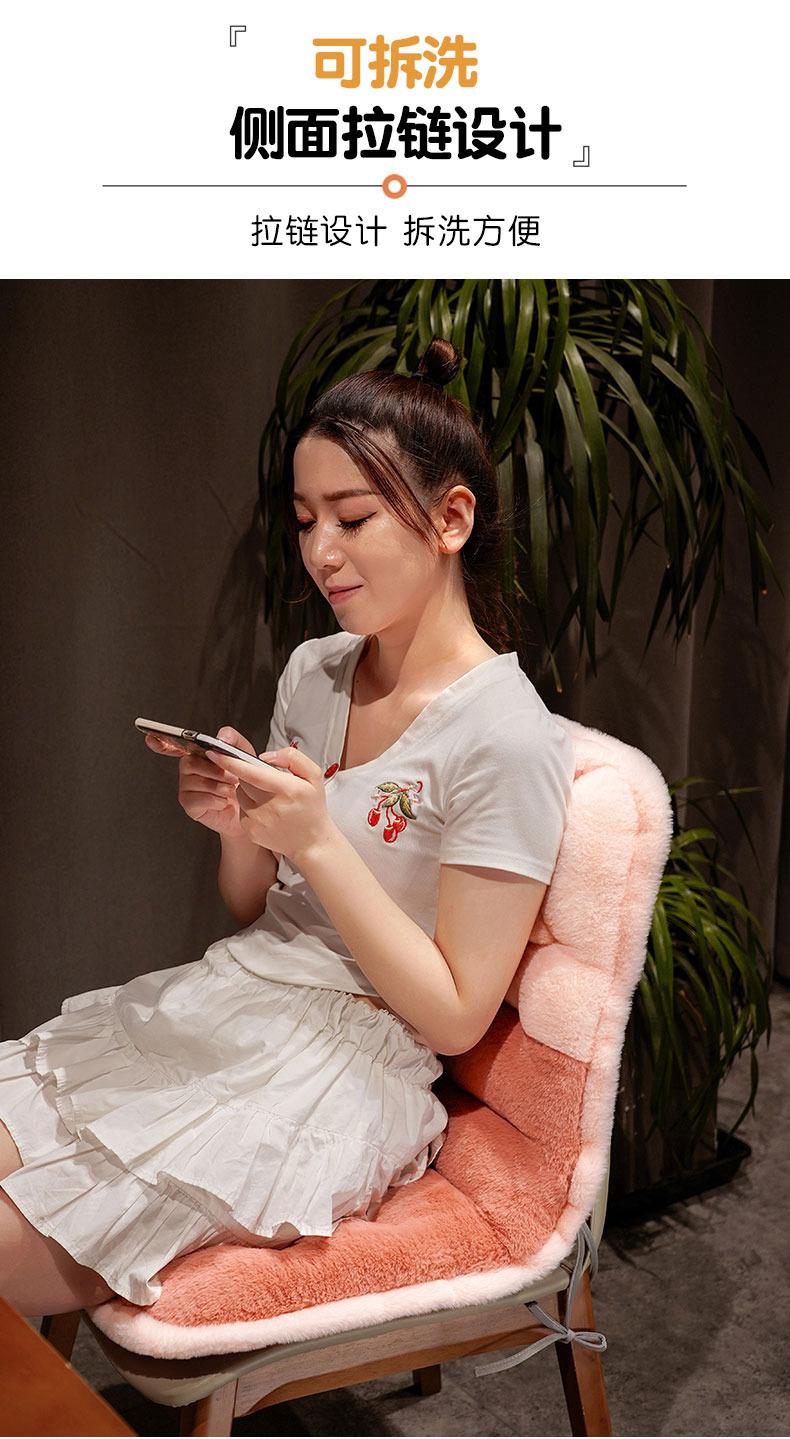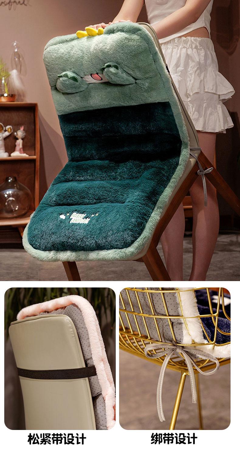 Cojín de silla para dormitorio de estudiantes de invierno, cojín para sentarse largo, extraíble y lavable, cojín de terciopelo de conejo grueso, respaldo integrado
