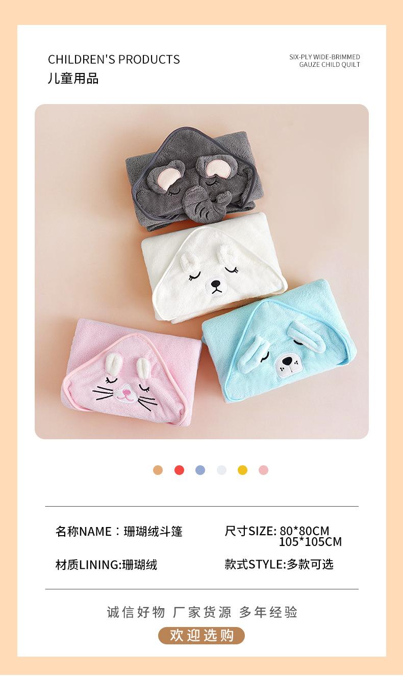 Venta al por mayor de toallas de baño de coral polar, capa de toalla de baño para niños con capucha, capa para niños, manta absorbente de dibujos animados para bebés