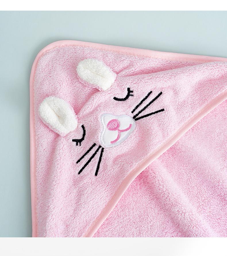 Albornoz de forro polar coral con capucha de animales pequeños de dibujos animados, toalla de baño infantil suave de algodón puro con borde cruzado que no suelta pelusa