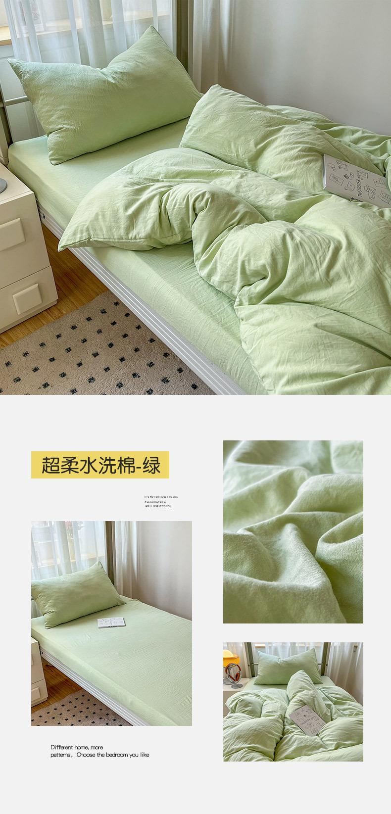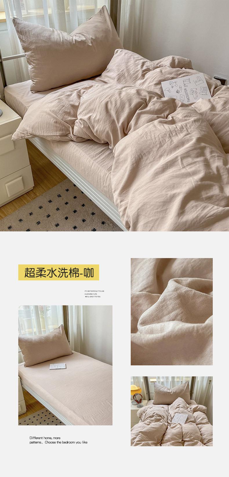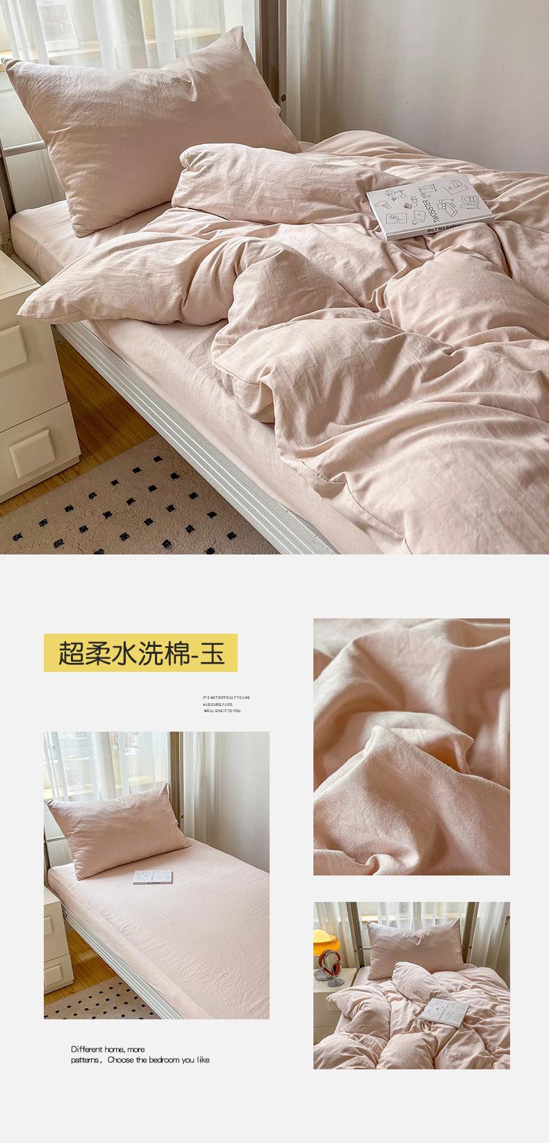 Nuevo conjunto de cuatro piezas de algodón lavado cepillado simple, súper suave y agradable para la piel, conjunto de tres piezas para dormitorio de estudiantes, comercio al por mayor
