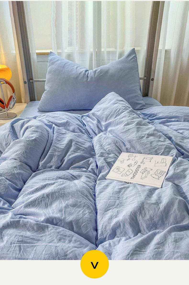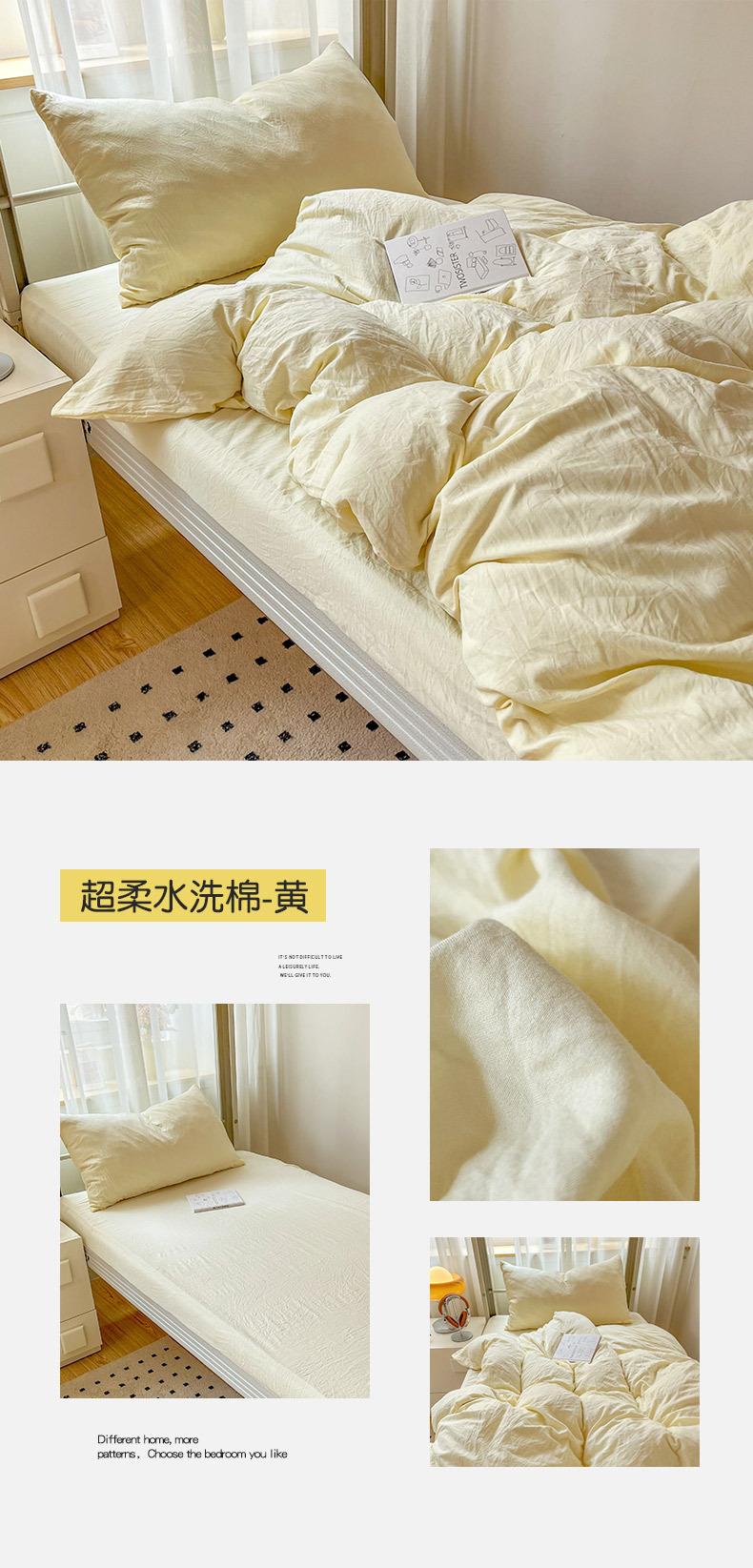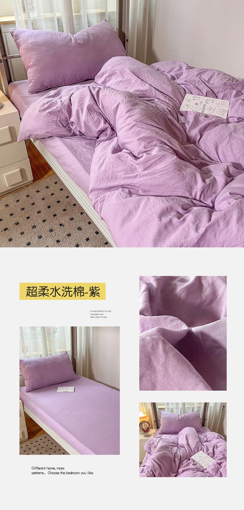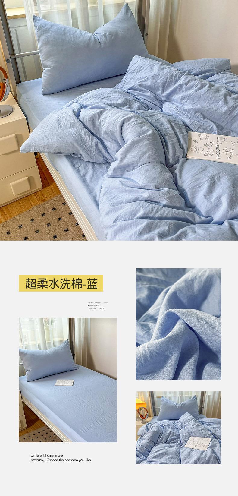 Nuevo conjunto de cuatro piezas de algodón lavado cepillado simple, súper suave y agradable para la piel, conjunto de tres piezas para dormitorio de estudiantes, comercio al por mayor