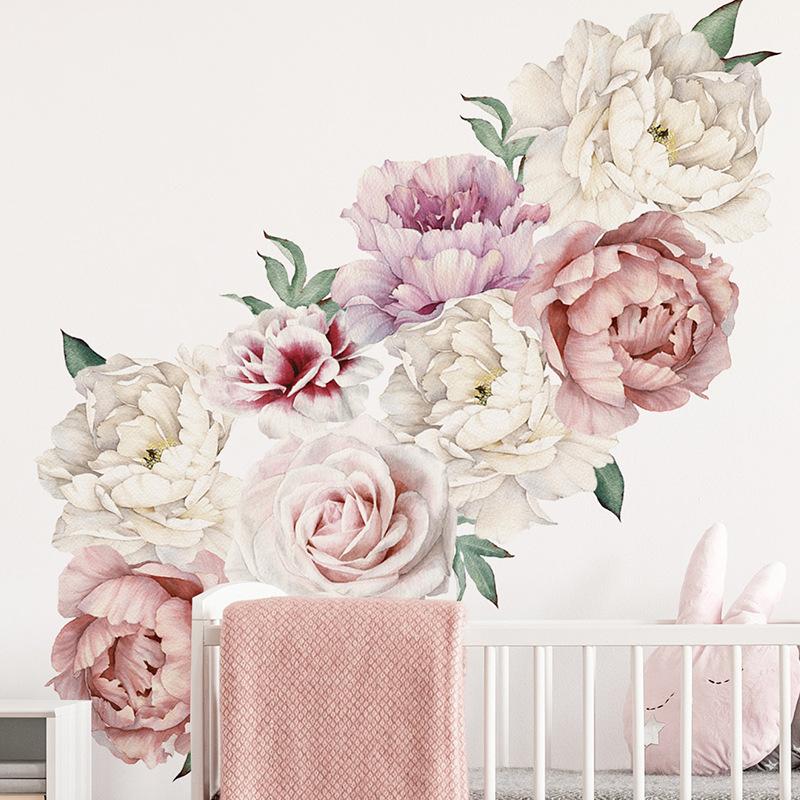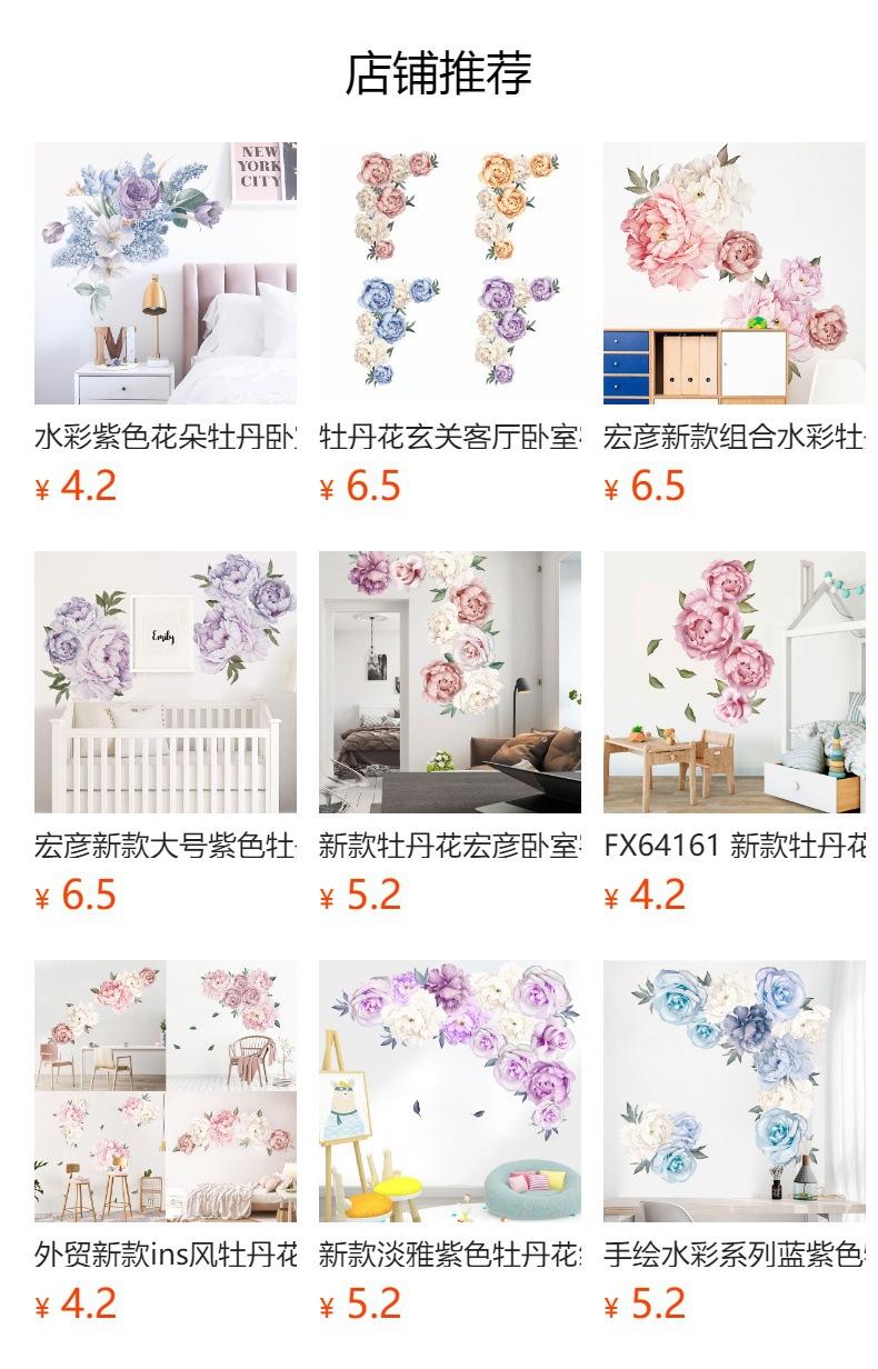 Comercio exterior clásico Flor de Peonía dormitorio sala de estar porche dormitorio decoración del hogar pegatinas de pared autoadhesivas venta al por mayor transfronterizo