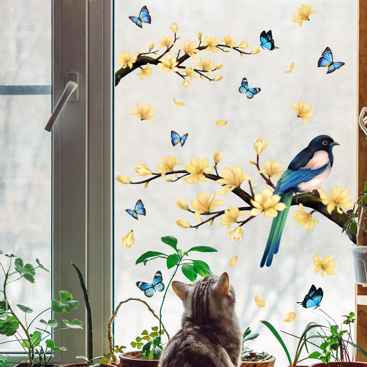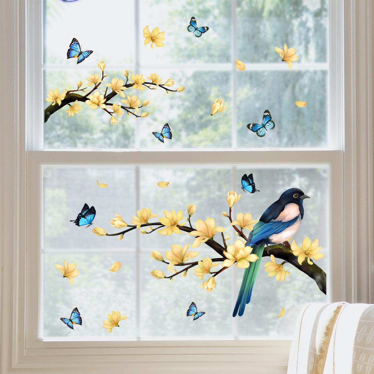 Compra Adhesivo de pared rama pájaro mariposa adhesivo de pared ventana de vidrio adhesivo estático decoración del hogar adhesivo de pared autoadhesivo al por mayor al por mayor en Joom.pro