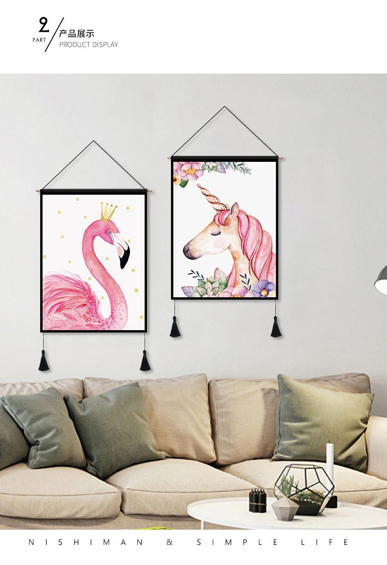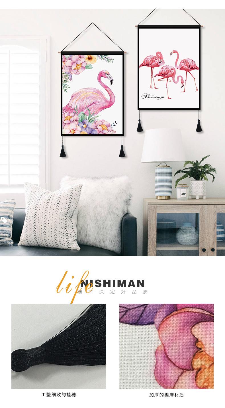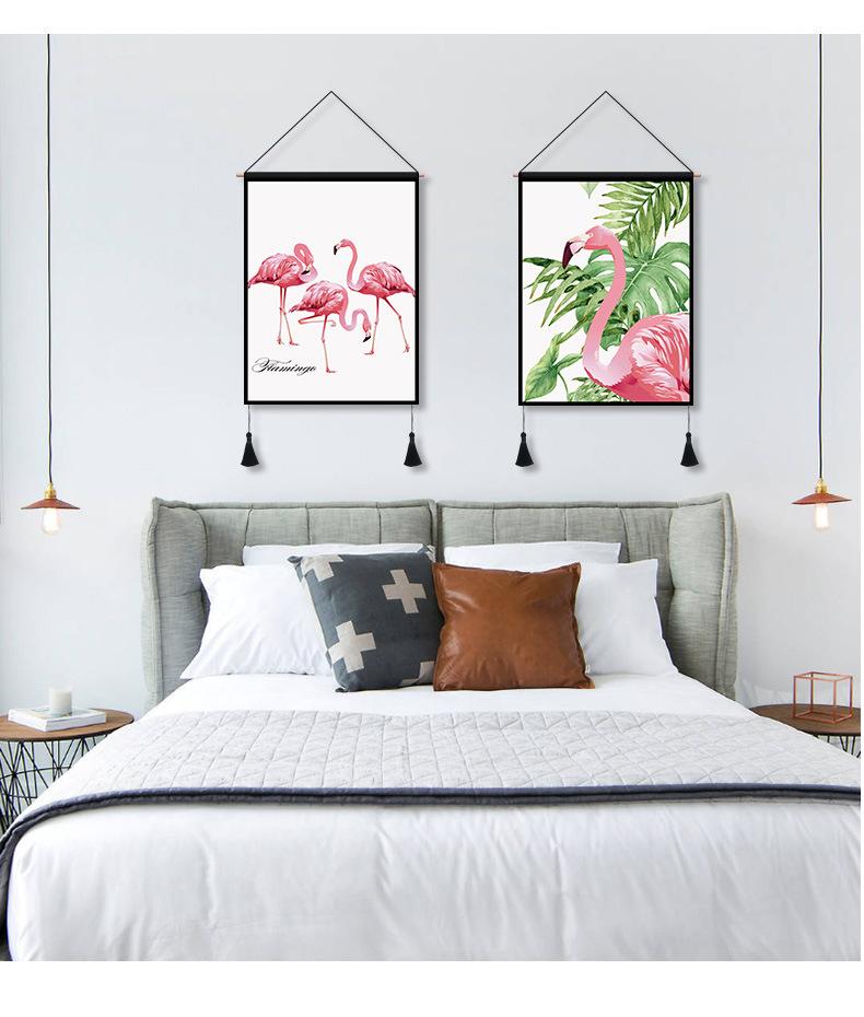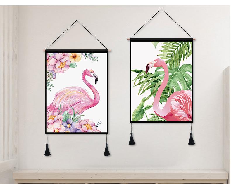 Pintura colgante nórdica ins Net Red Flamenco dormitorio sala de estar decoración de dormitorio tela de fondo mural una generación de cabello