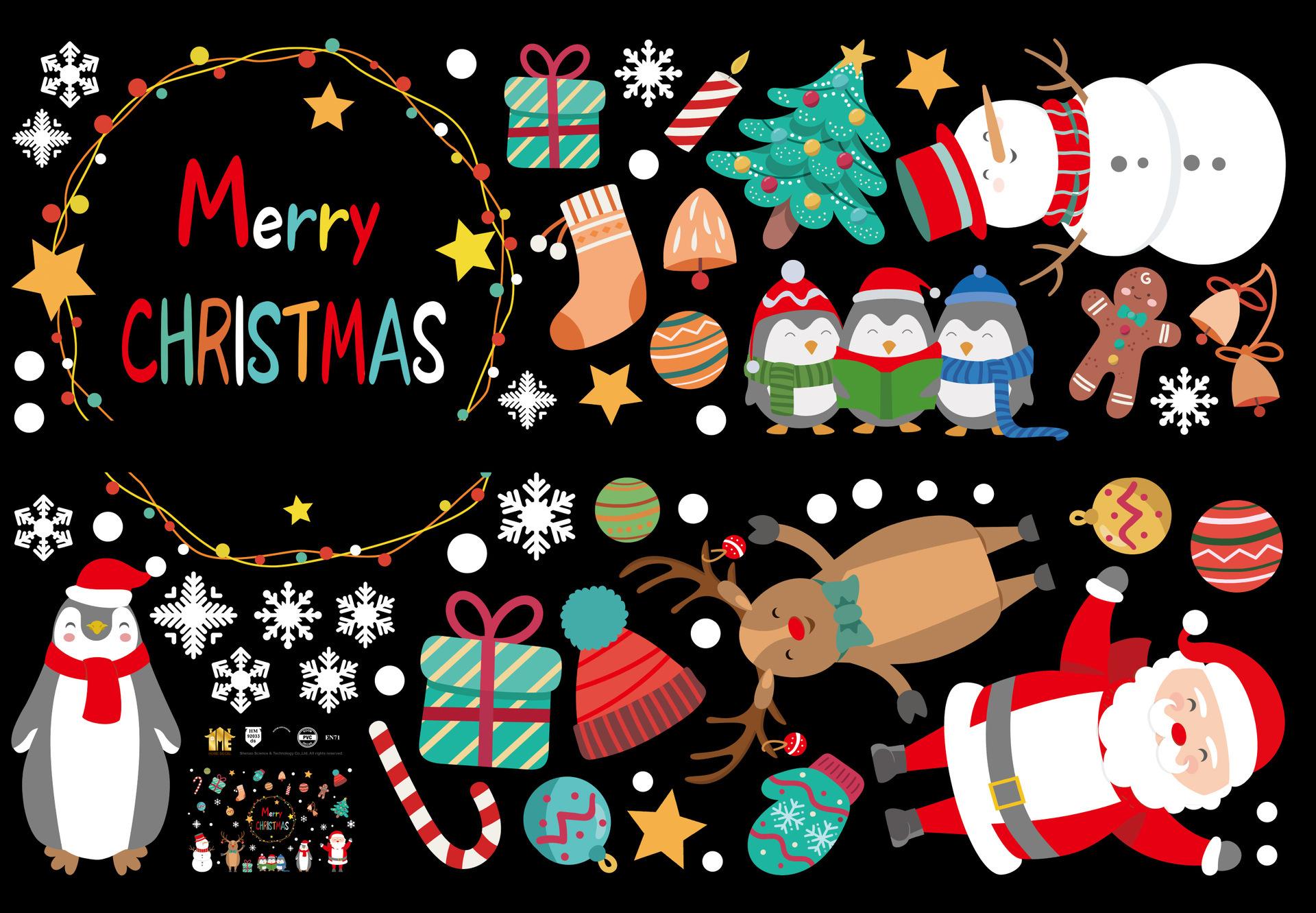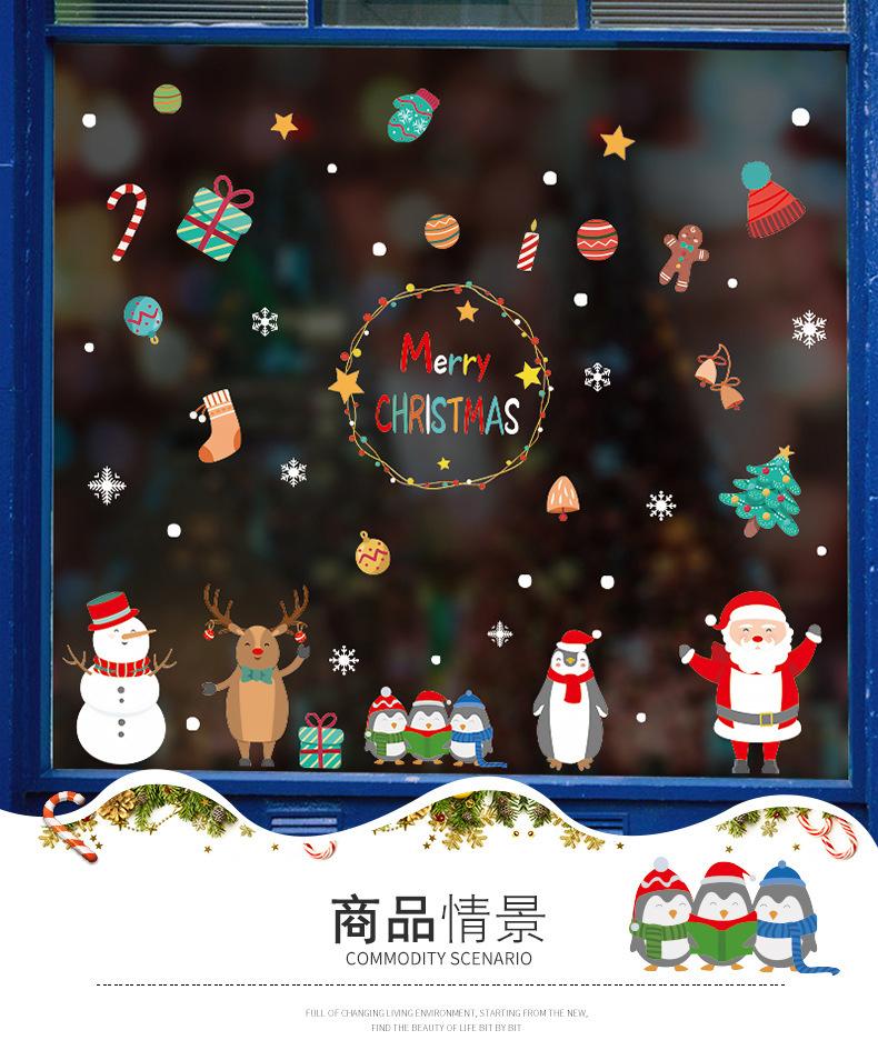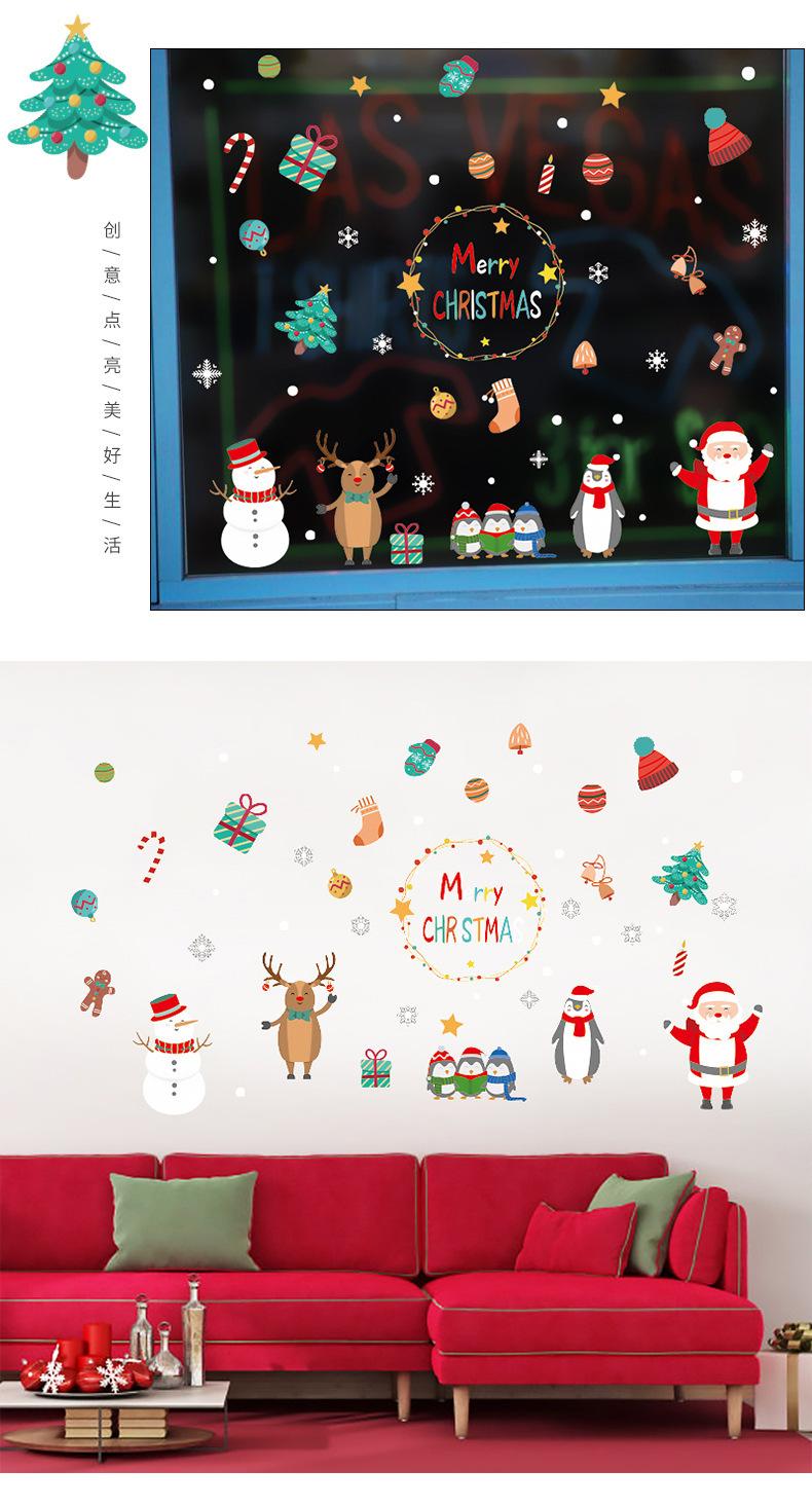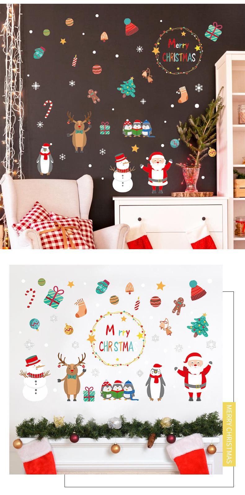 Pegatinas de pared decorativas de Papá Noel con dibujos animados para el fondo del dormitorio infantil, festival navideño, pegatinas extraíbles HM92033