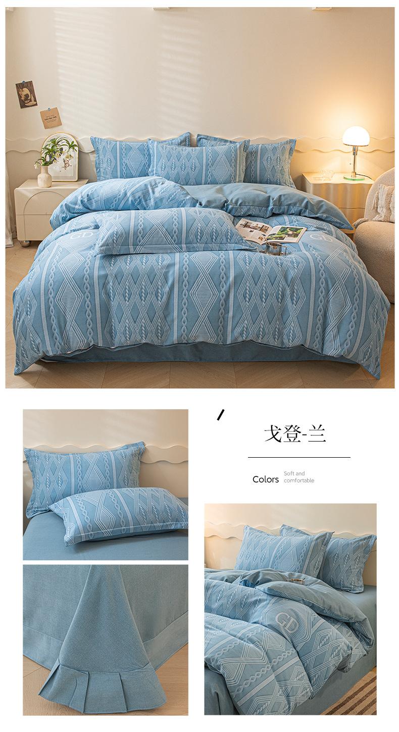 Compra Conjunto de cuatro piezas de algodón lavado con bordado de estilo simple, lijado grueso, color sólido, doble estilo, funda de edredón individual, conjunto de tres piezas para dormitorio de estudiantes al por mayor en Joom.pro