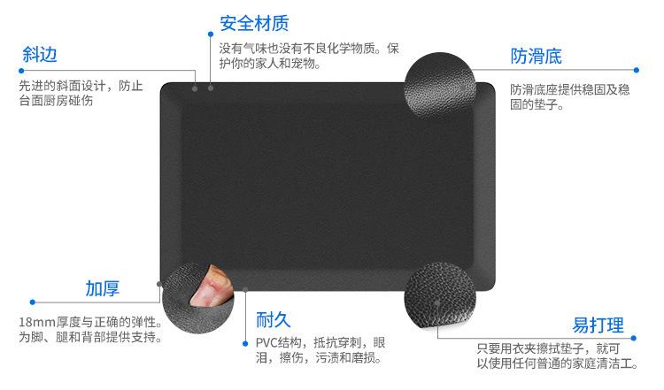 Tapete de Piso Transfronterizo de Amazon Antideslizante Antifatiga Tapete de Piso para Cocina de Aproximadamente 18mm de Espesor Tapete de PVC Tapete Largo para Cocina