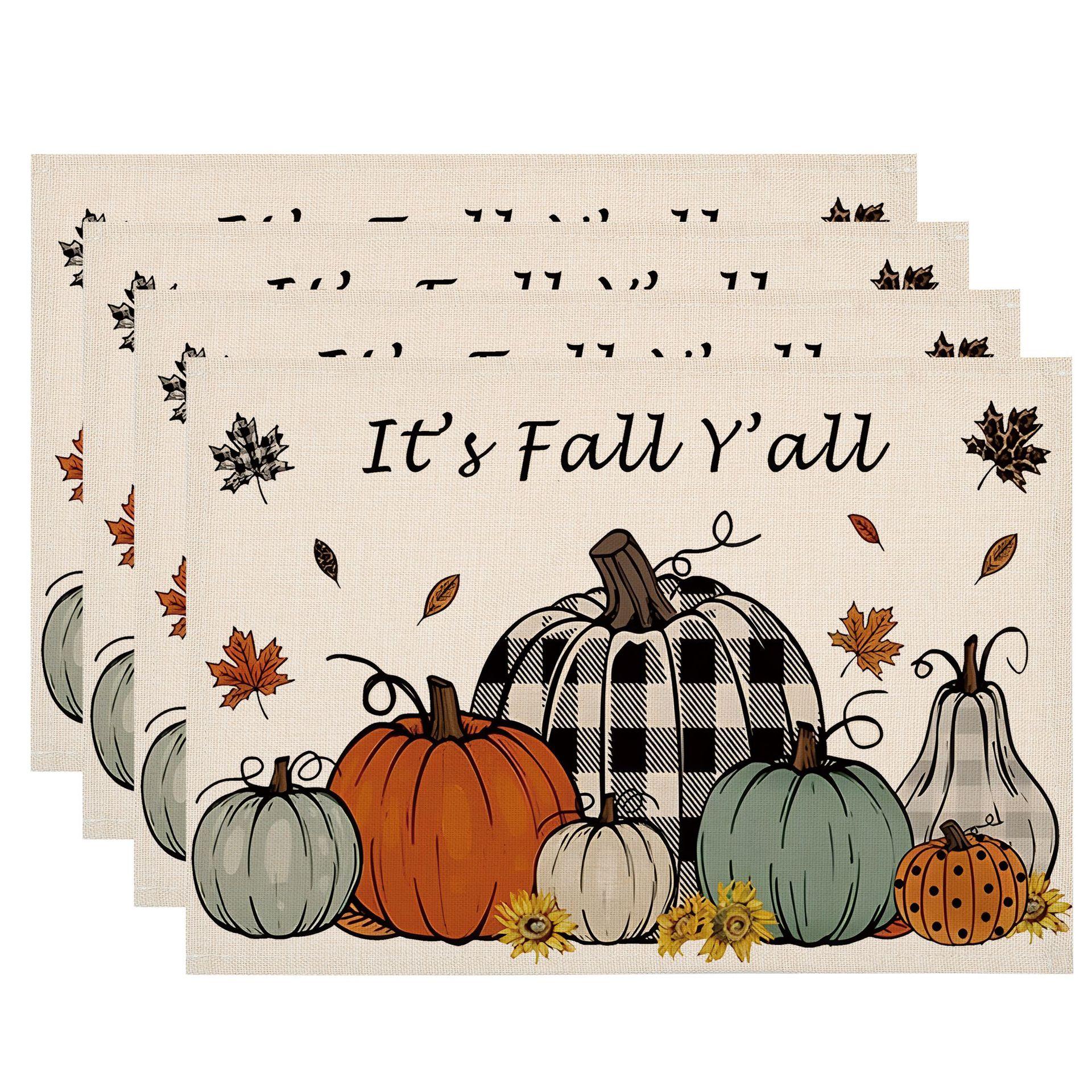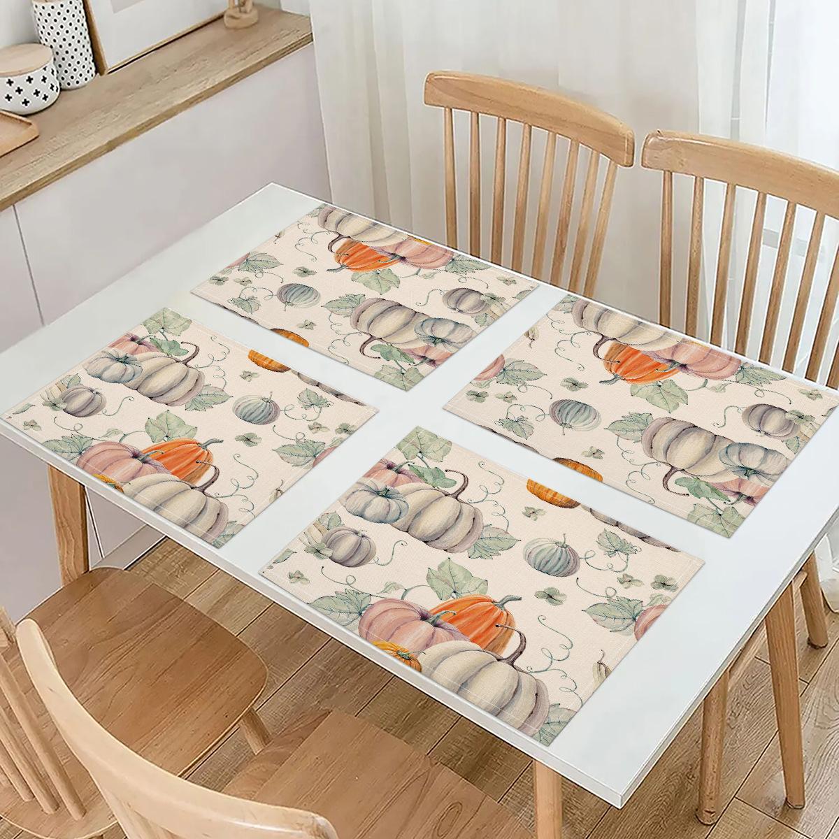 Mantel Individual Transfronterizo Día de Acción de Gracias Vacaciones Mantel Individual Decorativo Hogar Cocina Posavasos Aislamiento Térmico Anti-escaldaduras Lino Mantel Individual Occidental