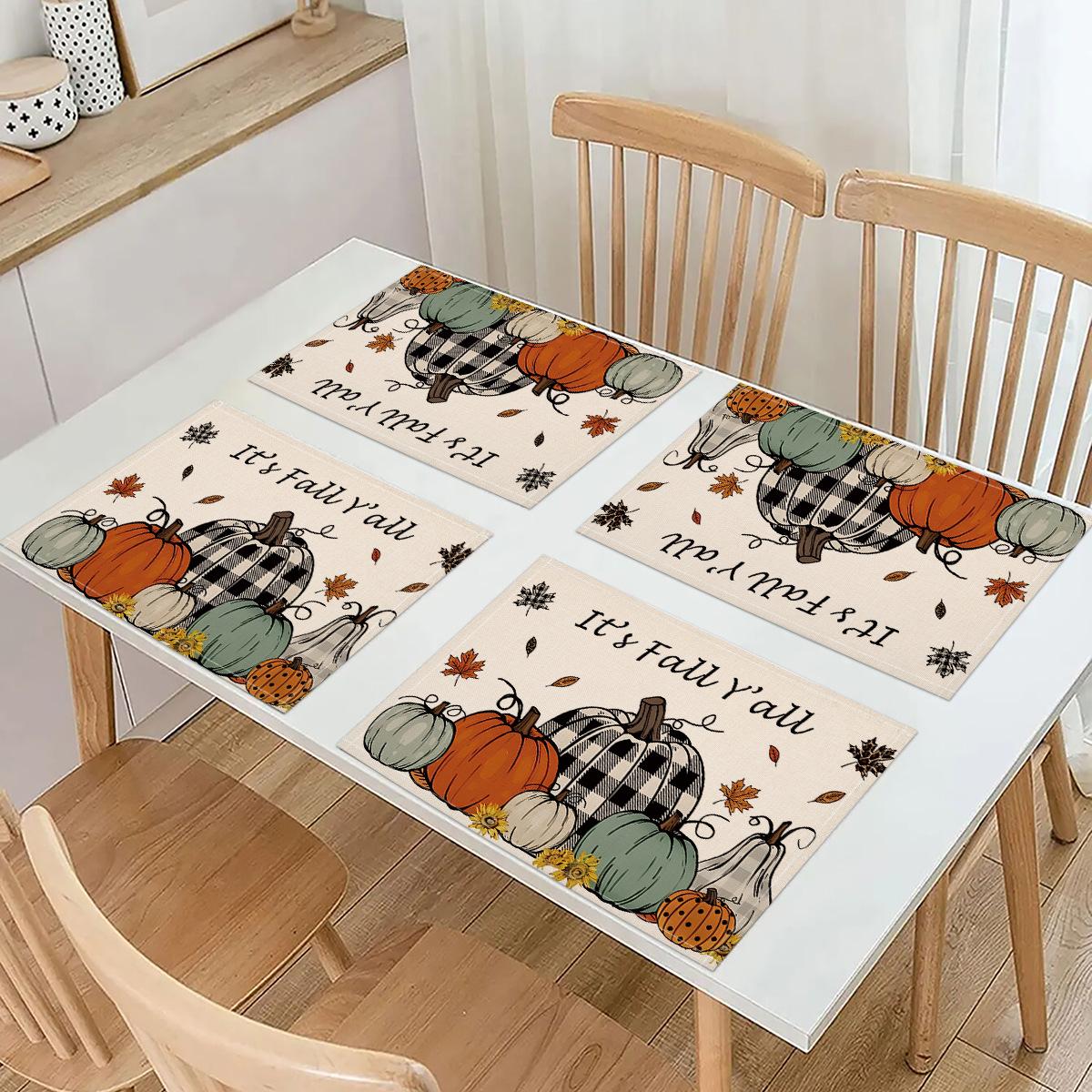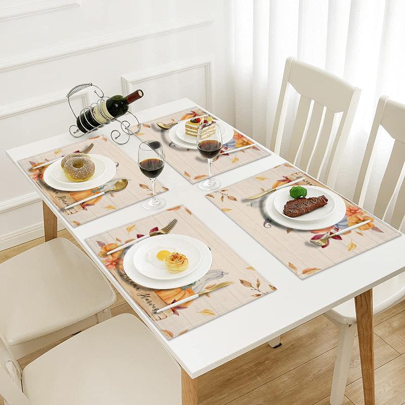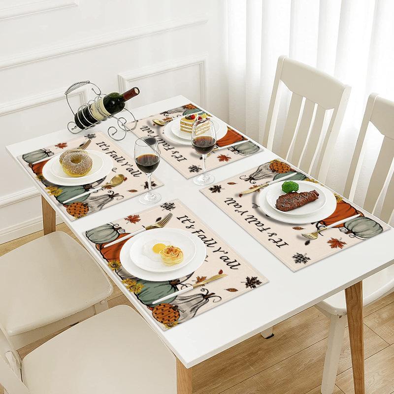 Compra Mantel Individual Transfronterizo Día de Acción de Gracias Vacaciones Mantel Individual Decorativo Hogar Cocina Posavasos Aislamiento Térmico Anti-escaldaduras Lino Mantel Individual Occidental al por mayor en Joom.pro