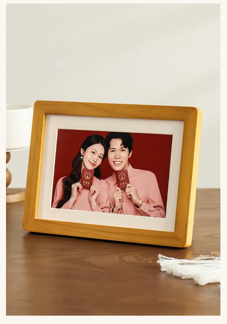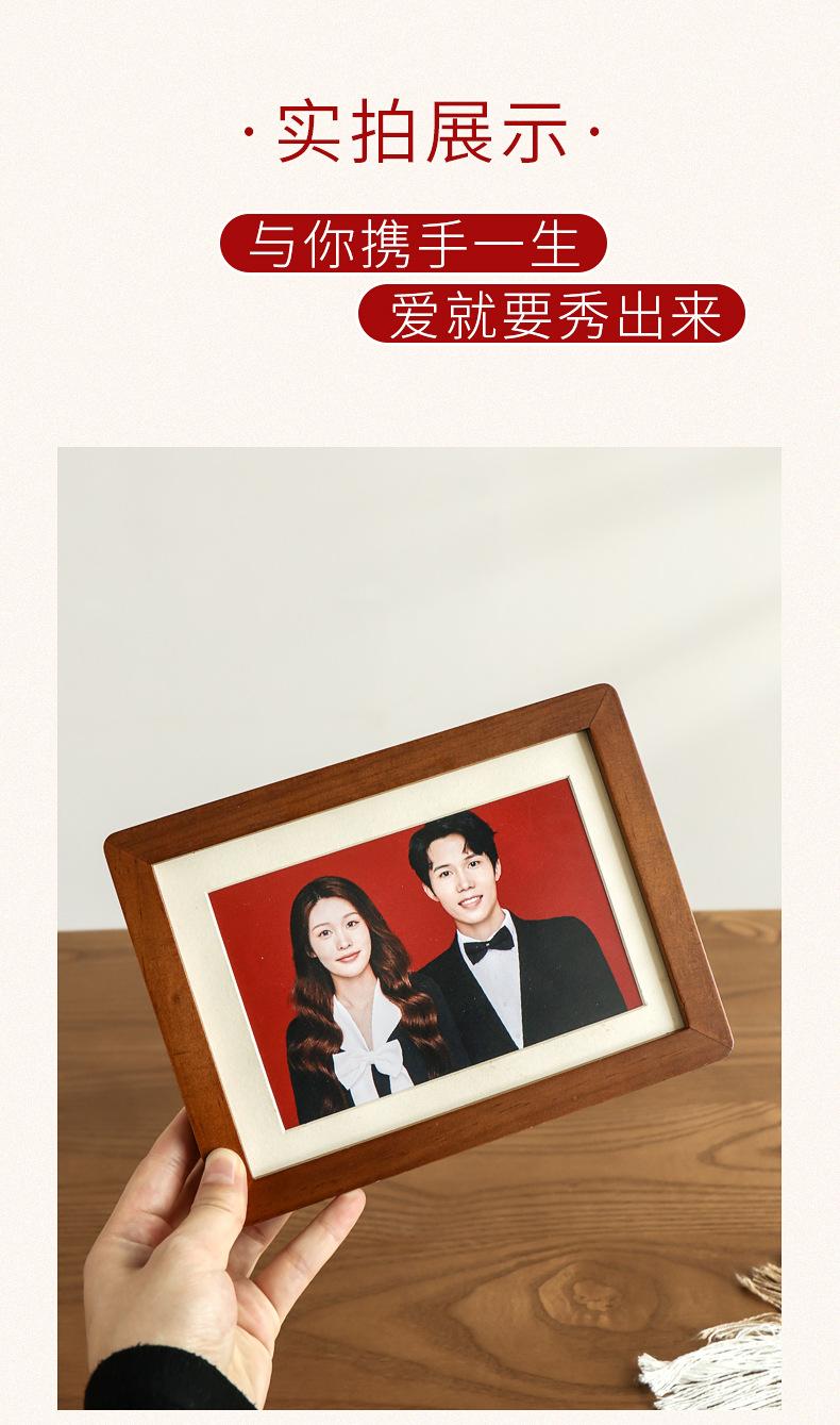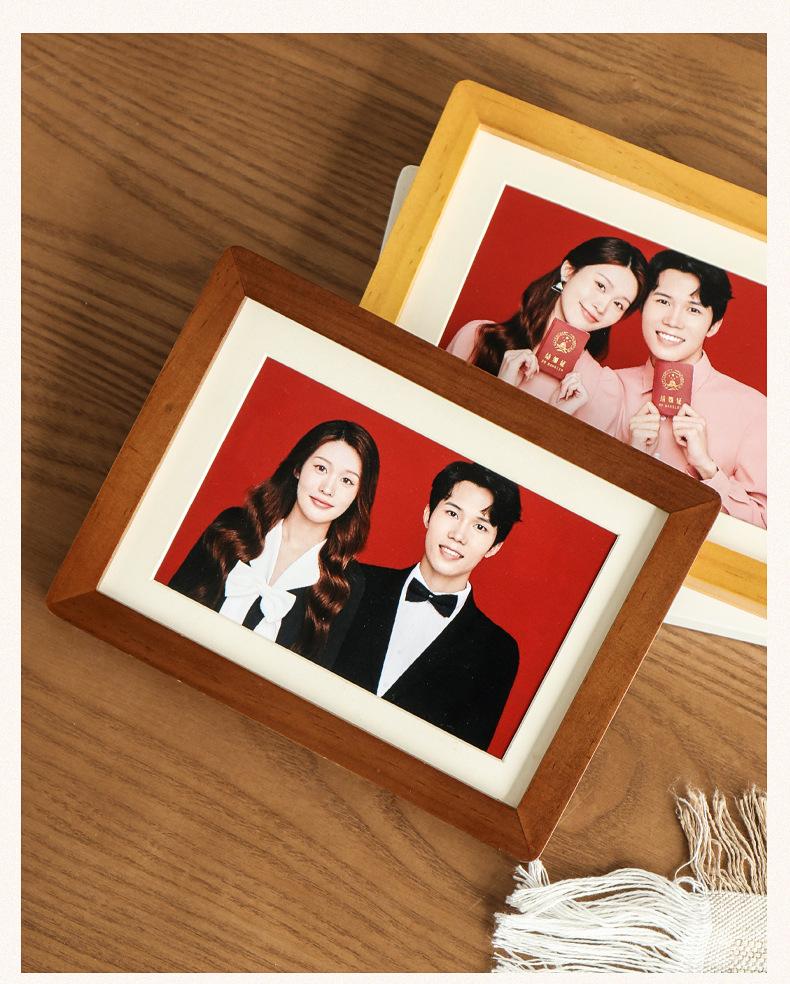 Marco de fotos de madera maciza simple, mesa A4, creativo, redondeado, color nogal, marco de fotos para registro de boda, venta al por mayor, marco de fotos para colgar en la pared