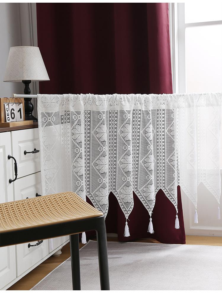 Cortina de café de estilo americano, ligera, de lujo, con encaje a rayas, para el hogar, para cocina, sala de estar, ventana, cortina semisombreada, venta al por mayor