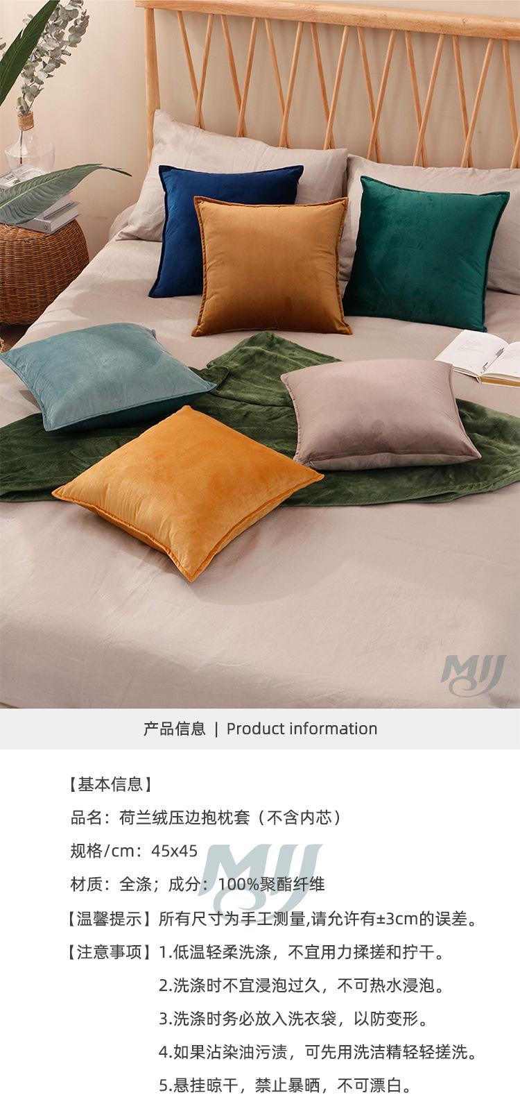 | Funda de almohada con borde de terciopelo holandés (sin núcleo interior) | Aproximadamente 100 g | 100 piezas/artículo | 50*50*50 | Embalaje en bolsa individual de PE |