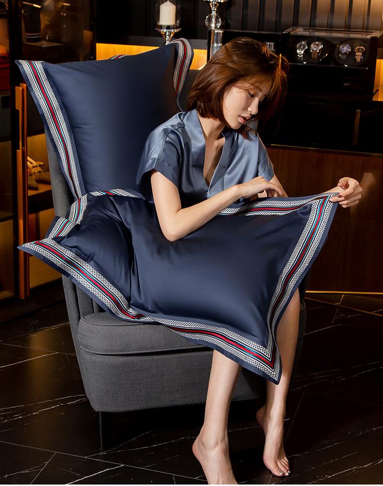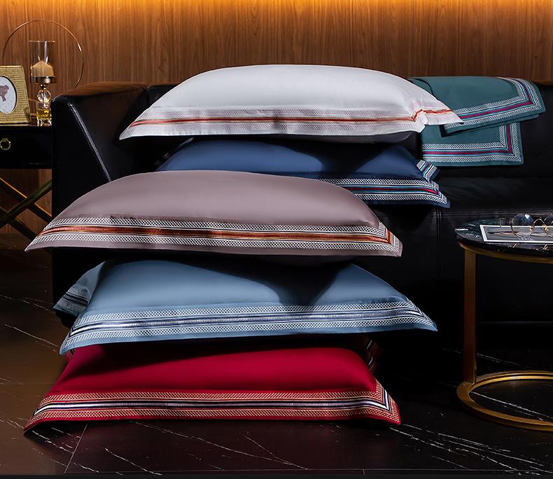 Funda de almohada individual de algodón de fibra larga de alta gama 100s estilo simple color sólido Hotel B & B alta soporte alta densidad funda de almohada comercio Venta al por mayor