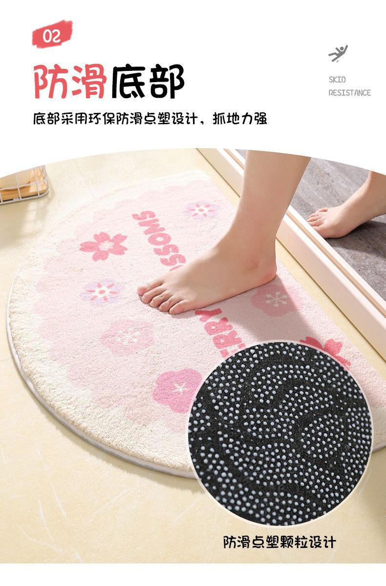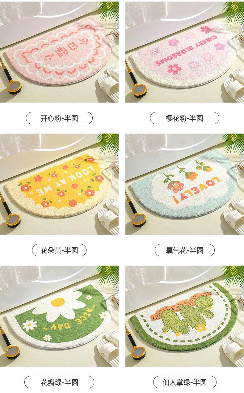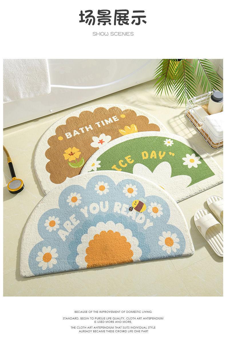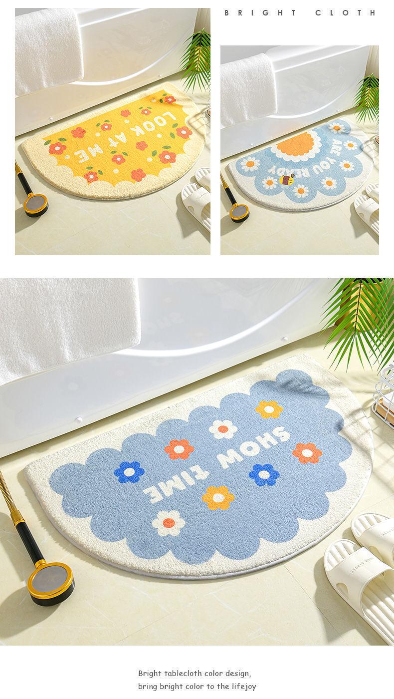 Alfombra de cachemira semicircular con diseño de pequeñas flores frescas para baño, alfombrilla para inodoro, alfombrilla para puerta de entrada, alfombrilla antideslizante para dormitorio