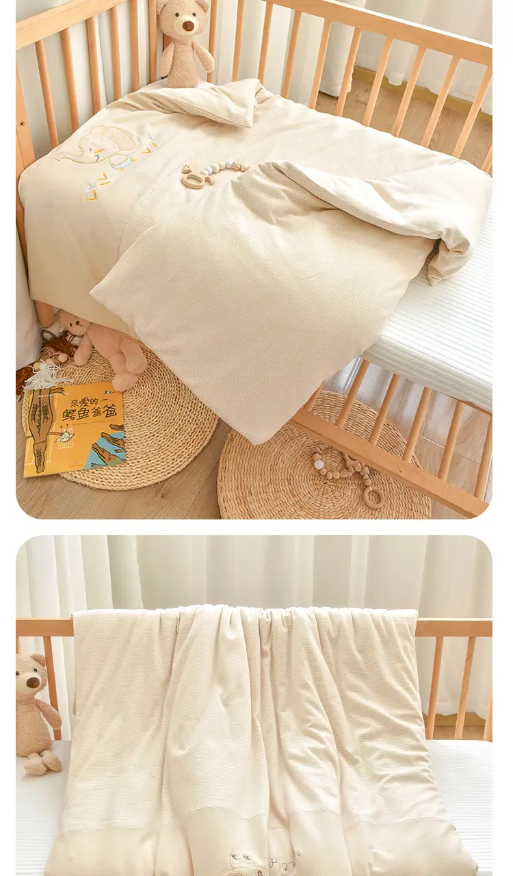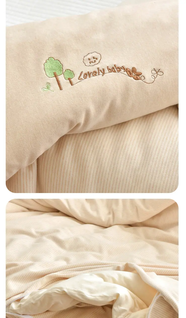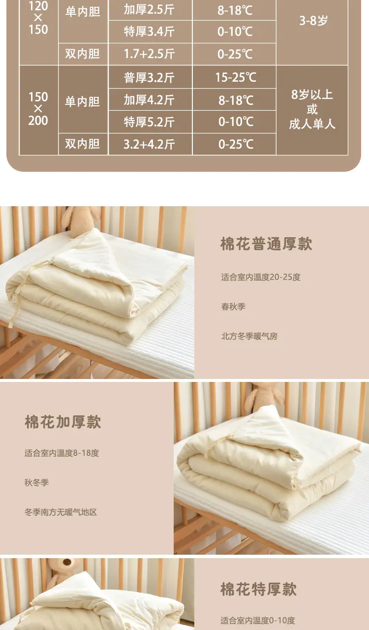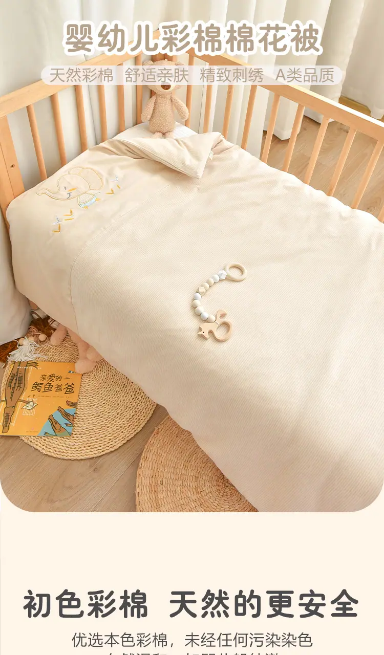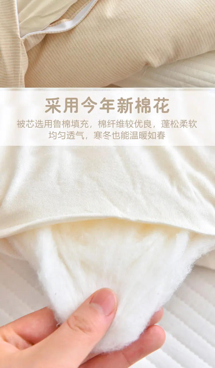 El edredón de algodón natural de la infancia, porque está hecho de algodón, las cosas negras que tiene son semillas de algodón.