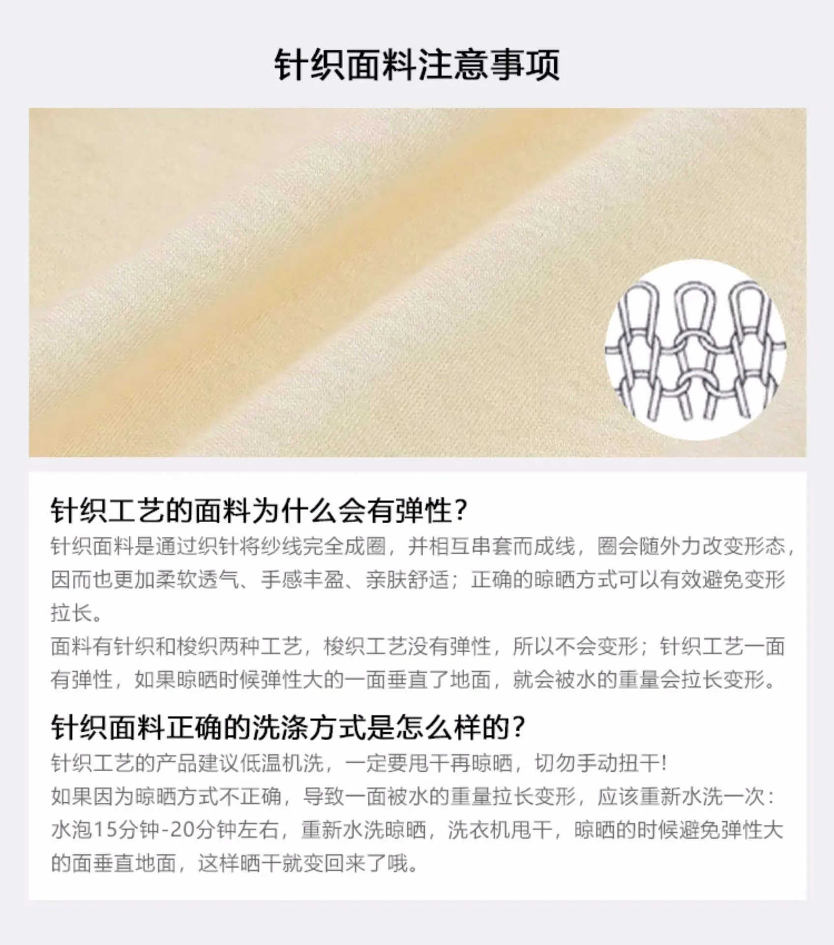 El proceso de tejido de la tela hace que un lado sea más elástico, y debe deshidratarse y secarse después del lavado para evitar la deformación.