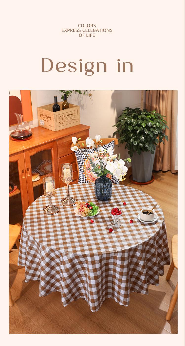 Mantel redondo grande de estilo europeo, impermeable, a prueba de aceite, desechable, de PVC, para hotel, hogar, mantel redondo a cuadros, a cuadros