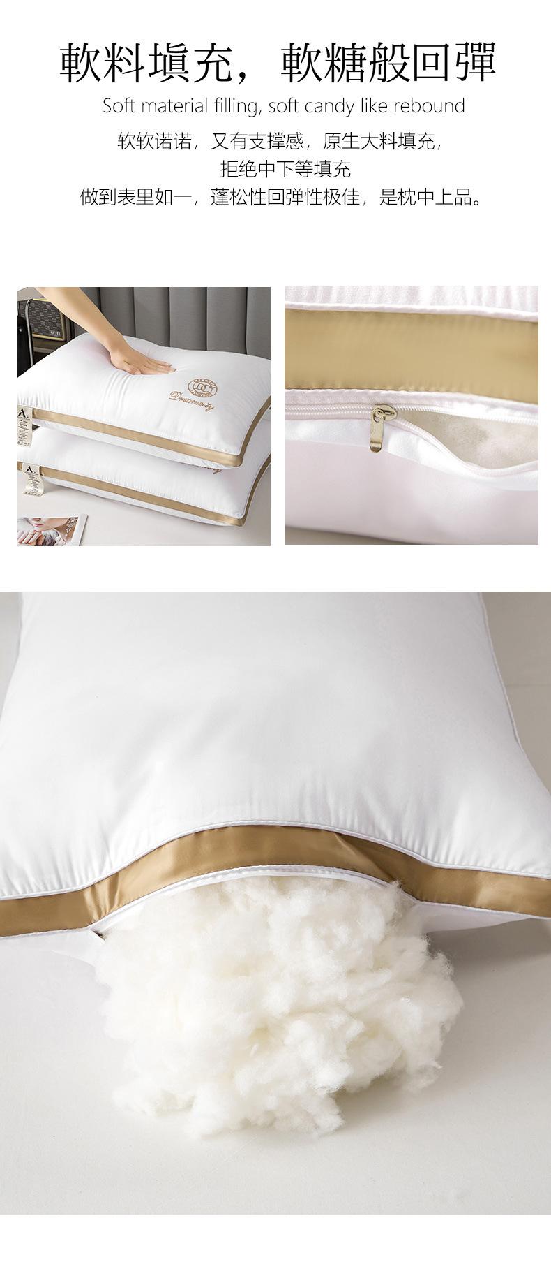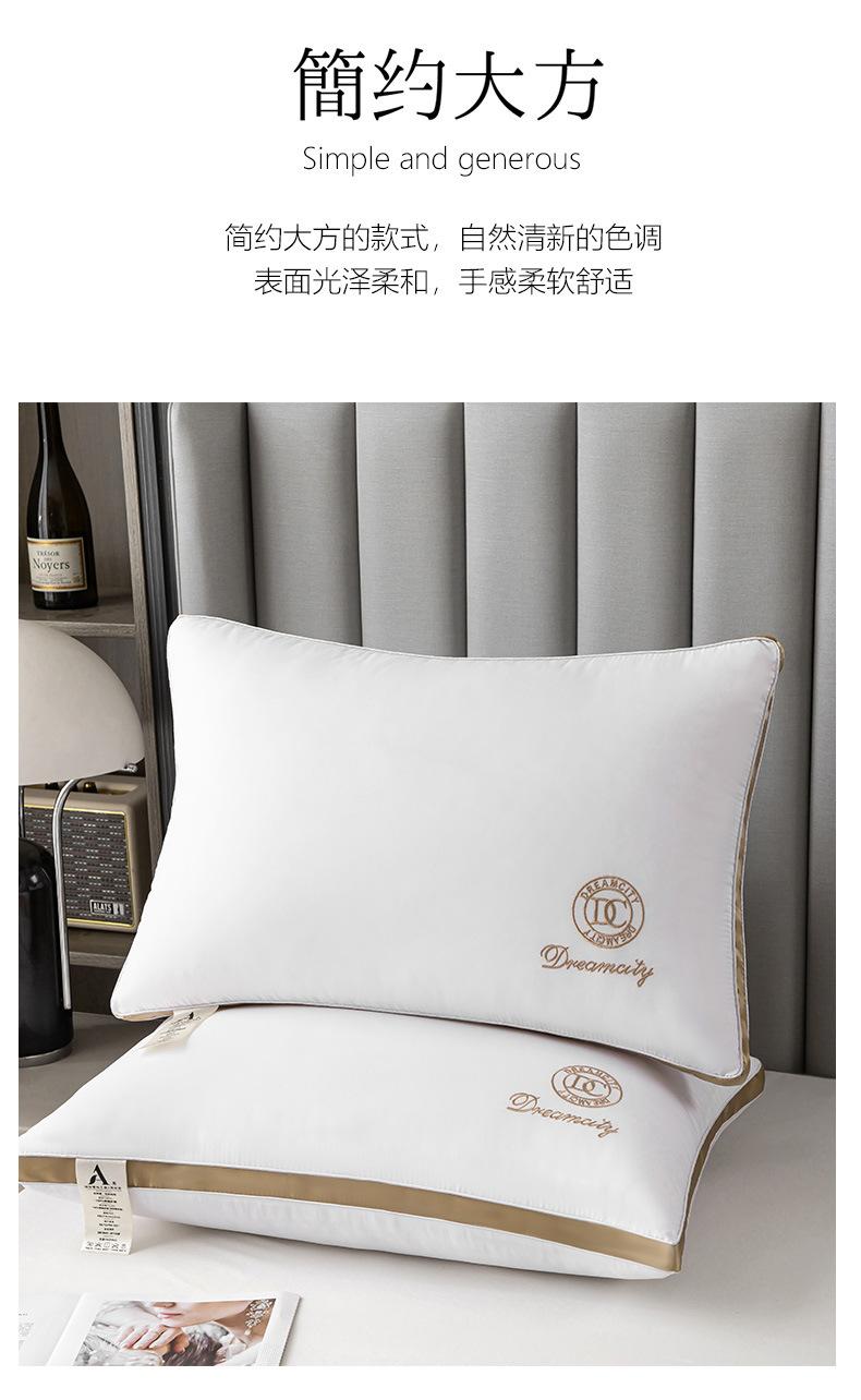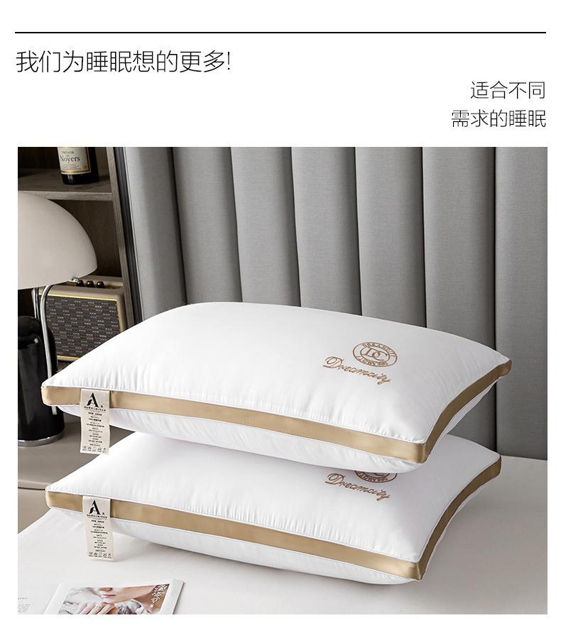 Almohada elástica de alta gama con bordado de hotel, nueva almohada de terciopelo con plumas, almohada tridimensional cepillada de alta calidad, protección para el cuello para estudiantes