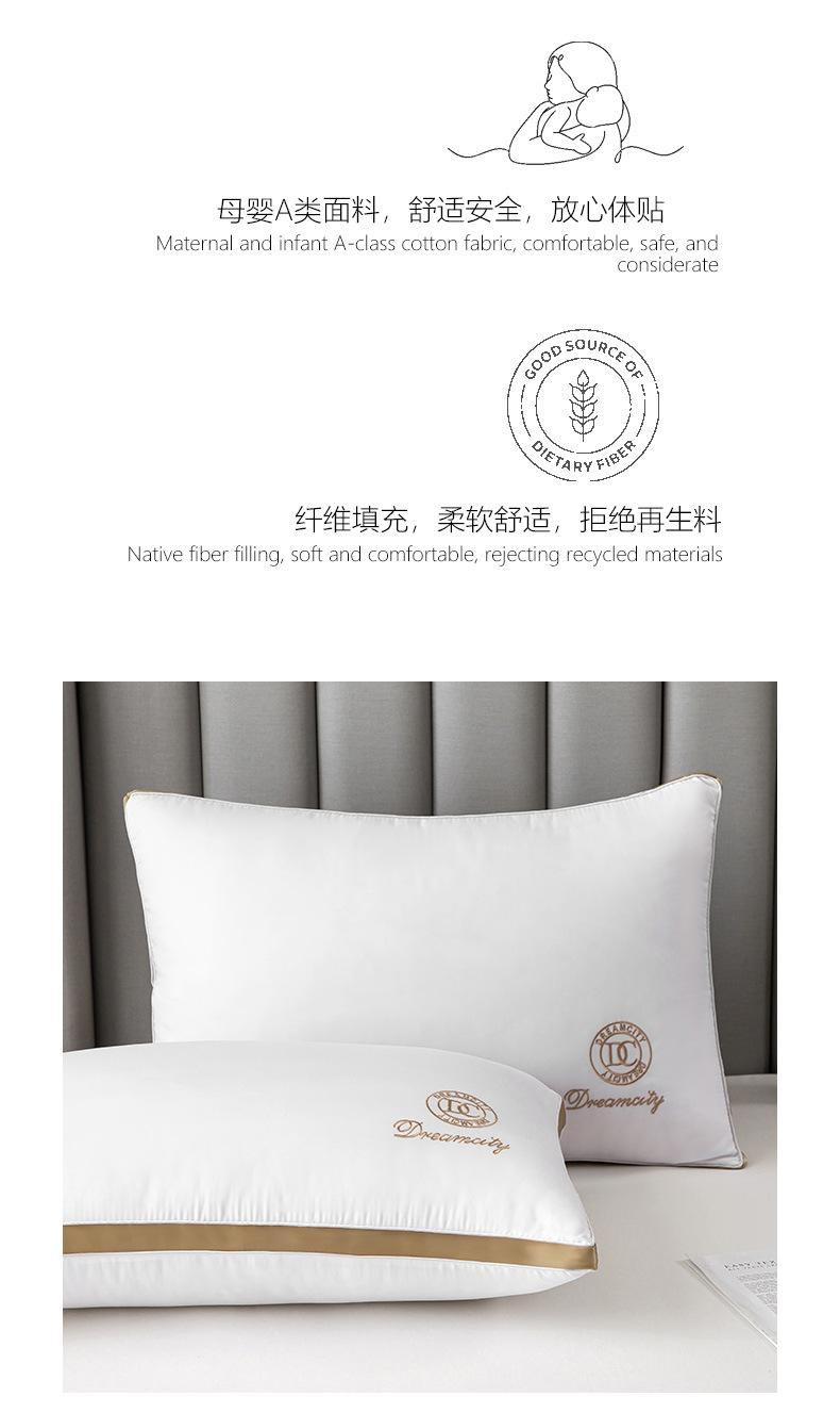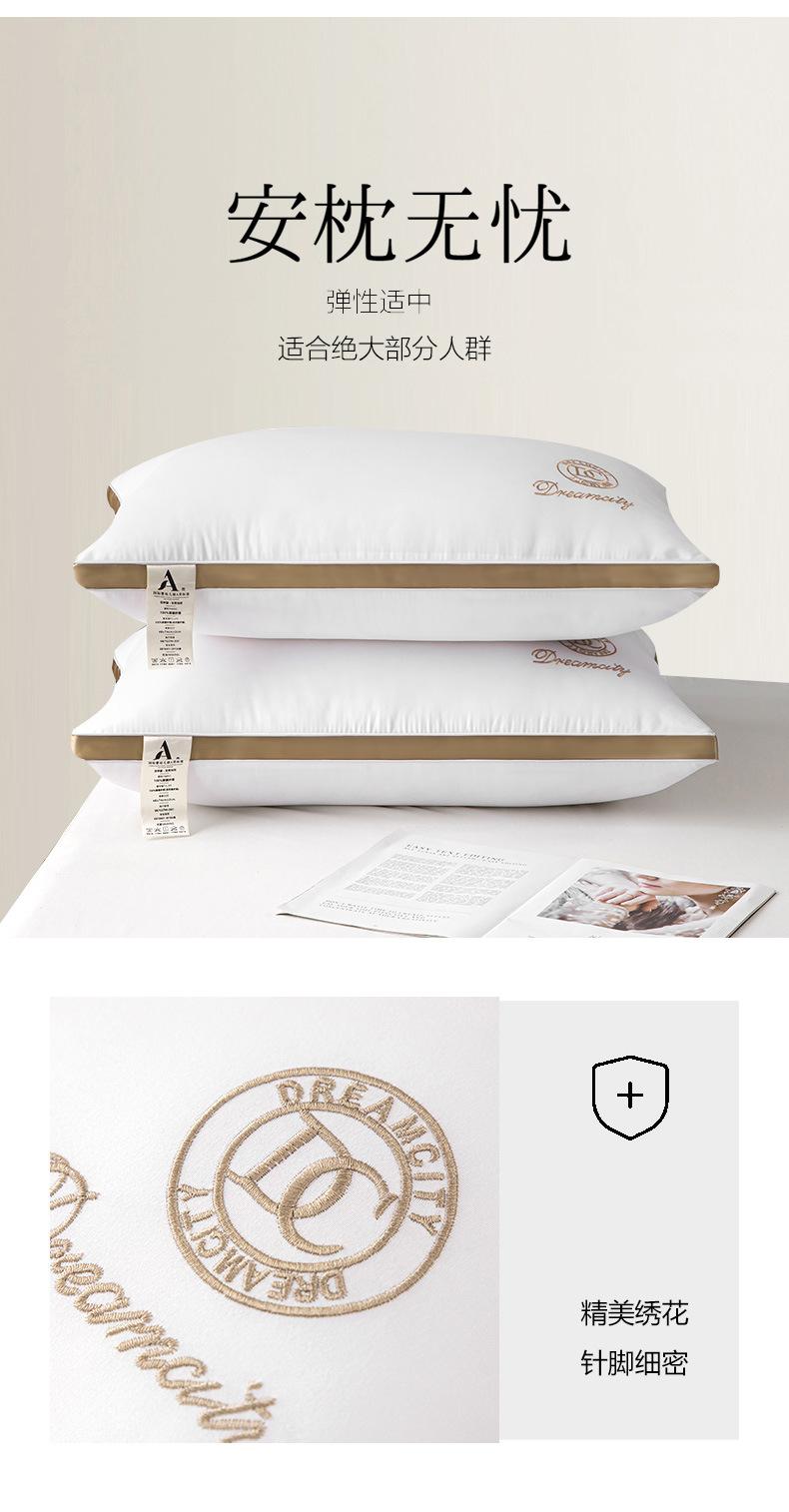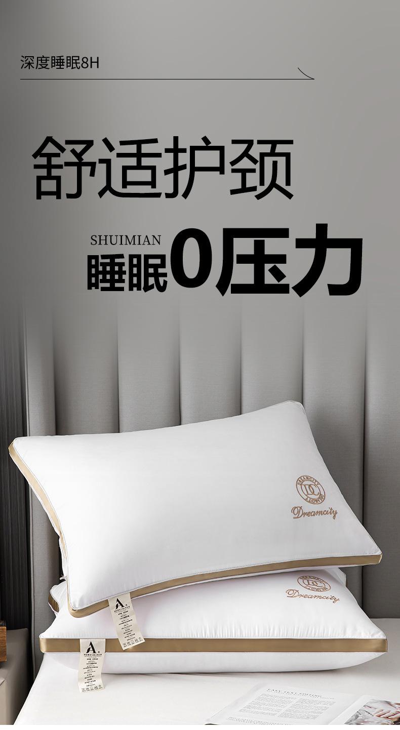 Almohada elástica de alta gama con bordado de hotel, nueva almohada de terciopelo con plumas, almohada tridimensional cepillada de alta calidad, protección para el cuello para estudiantes