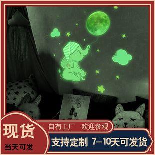 | KG001-C Nuevas pegatinas de pared fluorescentes creativas con diseño de elefante, luna y estrella para decoración de habitaciones infantiles, pegatinas autoadhesivas para pared |