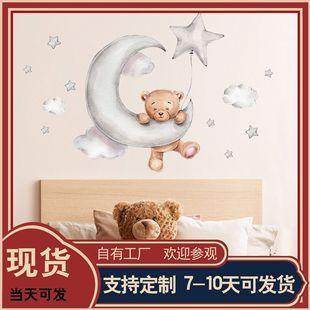 | Nueva pegatina de pared decorativa de dibujos animados de oso, luna, nube y estrella para dormitorio infantil, fondo de pared, pegatina de pared decorativa 2 |