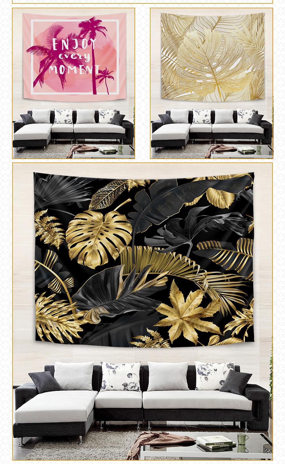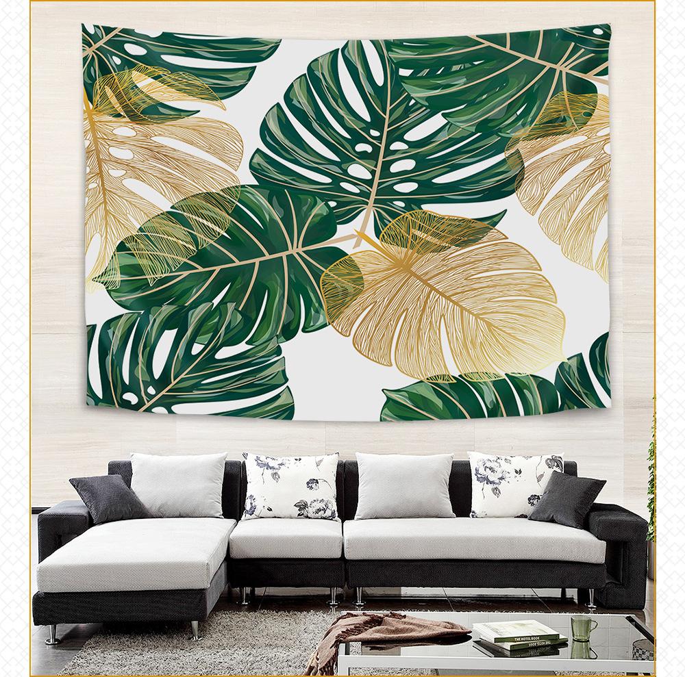 Tapiz Serie Hojas Verdes Estilo Hogar Nórdico Ins Impresión de Hojas Europea y Americana Tela Colgante Decorativa Fondo de Dormitorio Fabricantes