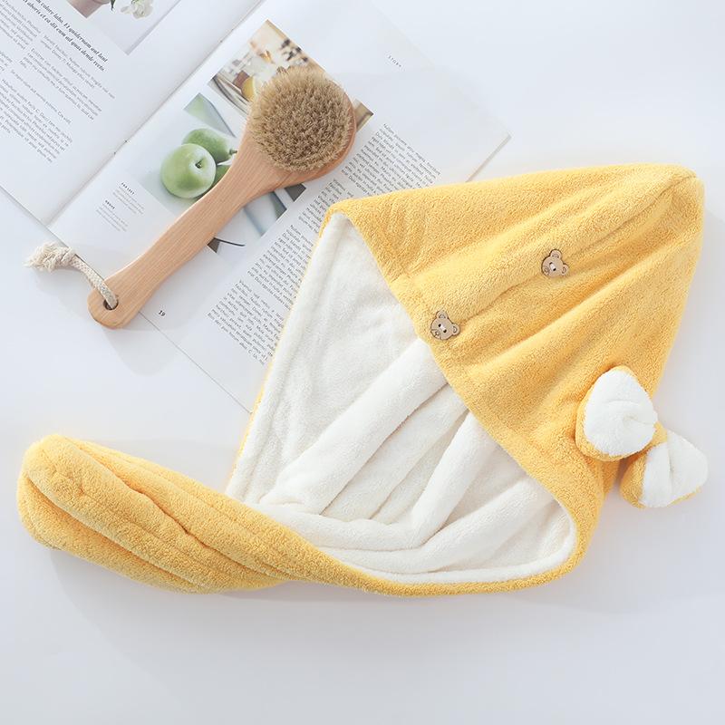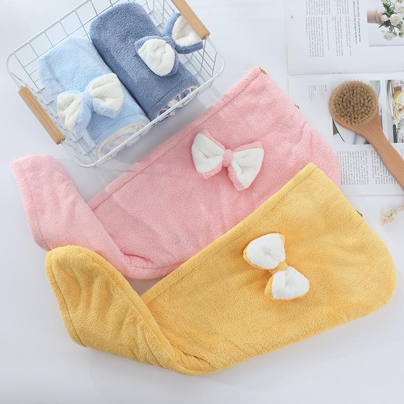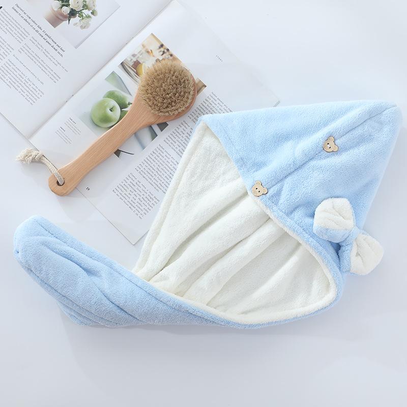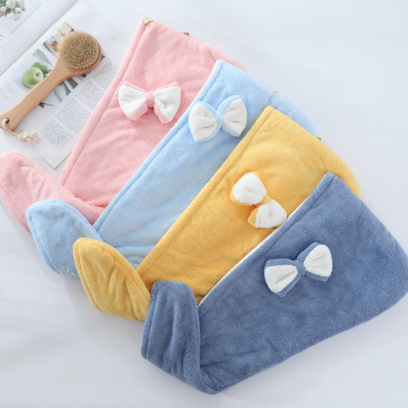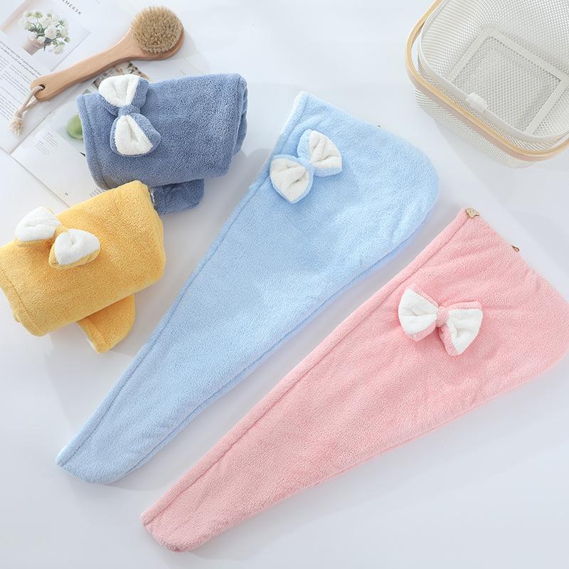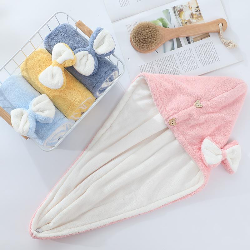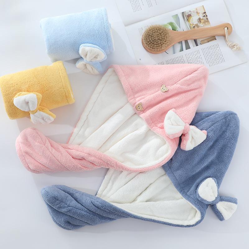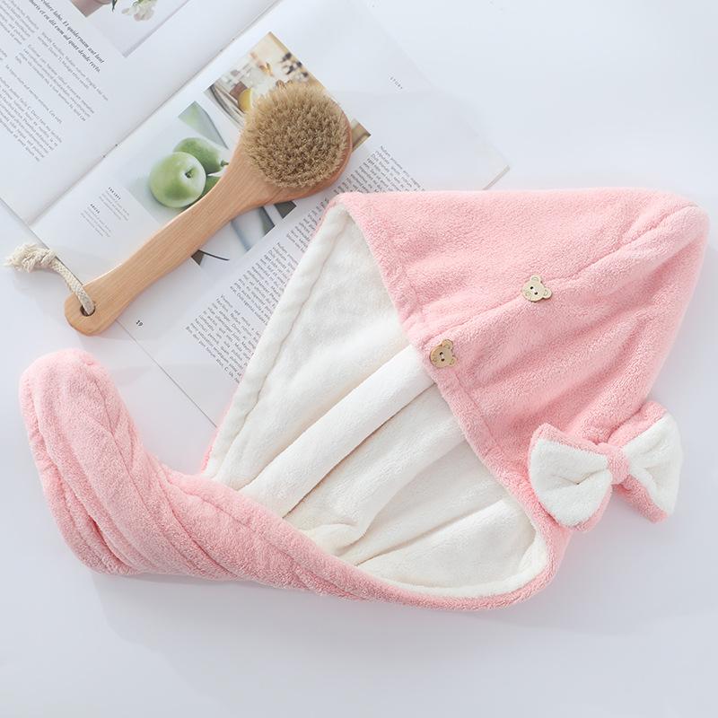 Gorro para Cabello Seco para Mujer, Absorbente de Agua Engrosado, Toalla para Cabello de Secado Rápido, Terciopelo Coral, Lindo Gorro de Ducha, Gorro para Cabello Seco con Lazo de Doble Capa