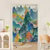 | Nueva cortina de puerta de tela de estilo chino con velcro, sin perforaciones, semibloqueante, para baño, cortina de puerta de imitación de algodón y lino para interiores del hogar |