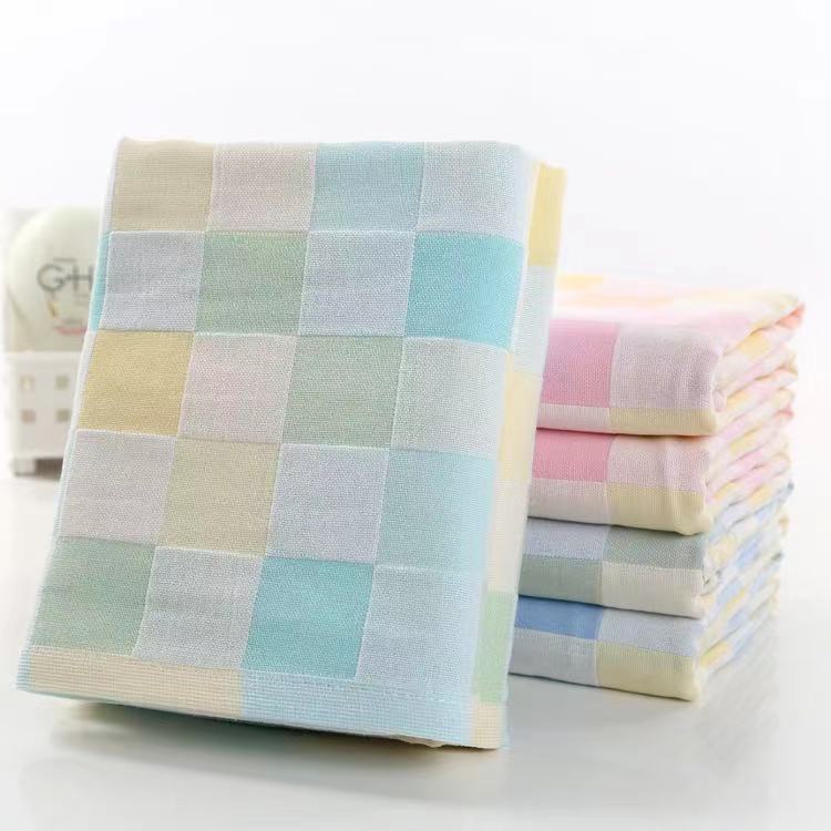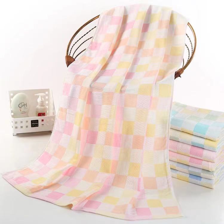 Compra Venta al por mayor de fabricante Toalla de baño para niños 70*140 Gasa de doble capa a cuadros Tienda para madres y bebés Logo bordado Gasa de algodón al por mayor en Joom.pro