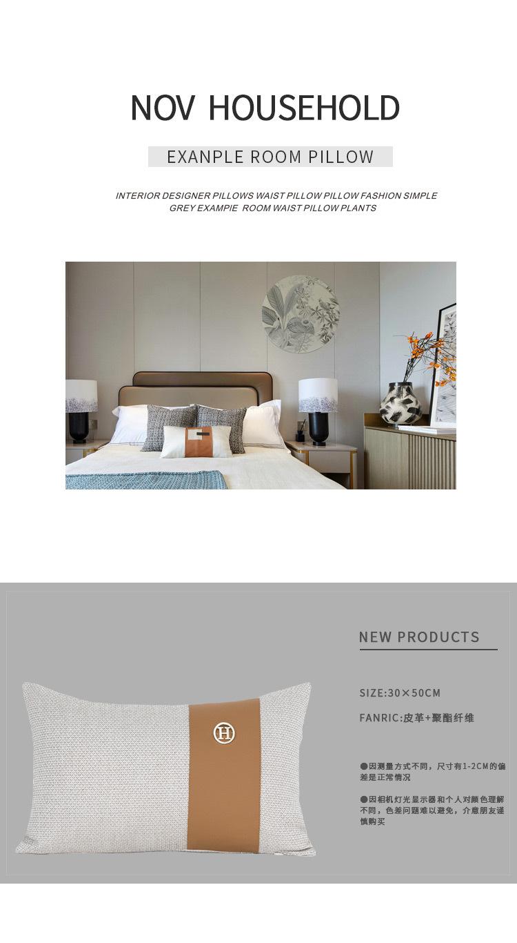 Almohada Lumbar Textura Lino Algodón Beige Moderna Simple Ventana Flotante Cama Respaldo Lumbar Hebilla Metálica Cojín Decorativo de Cuero