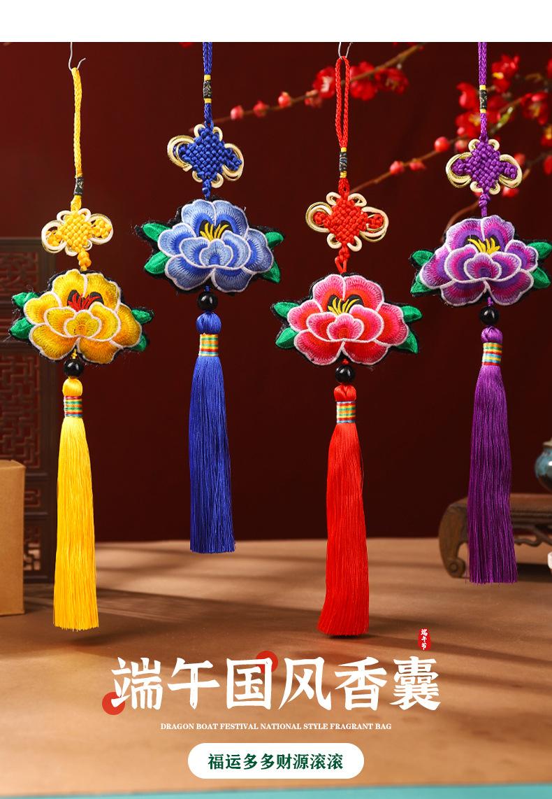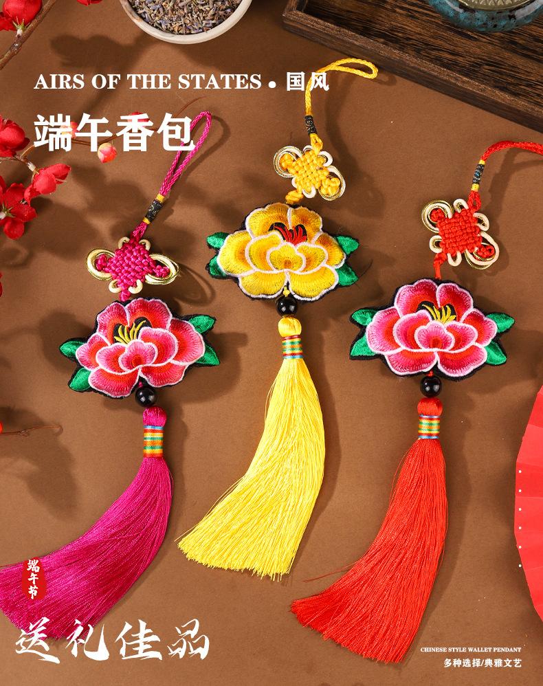 Bolsita de flores para el Festival del Bote del Dragón, colgante con borlas bordadas con nudo chino, adornos de bolsita de estilo antiguo, regalo para el Festival del Bote del Dragón