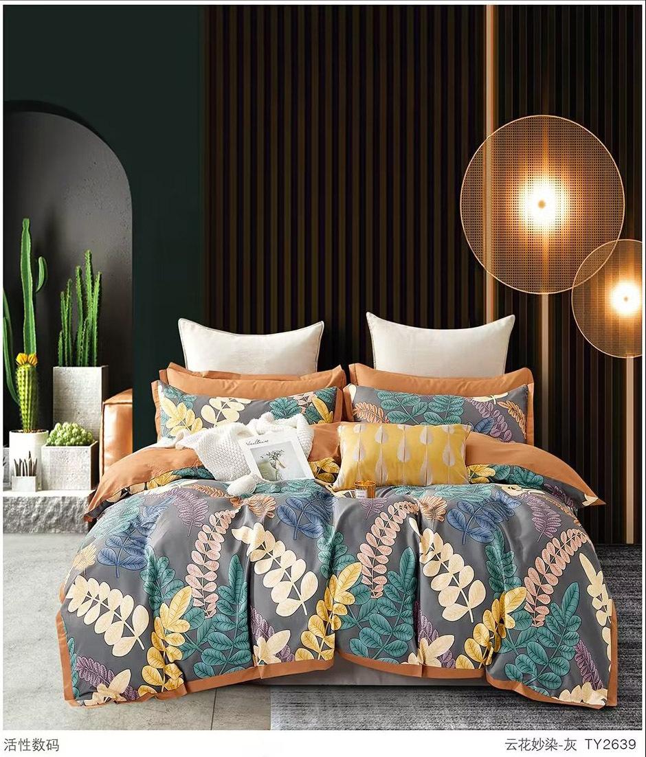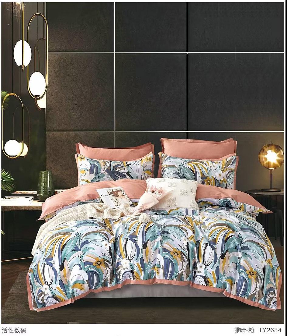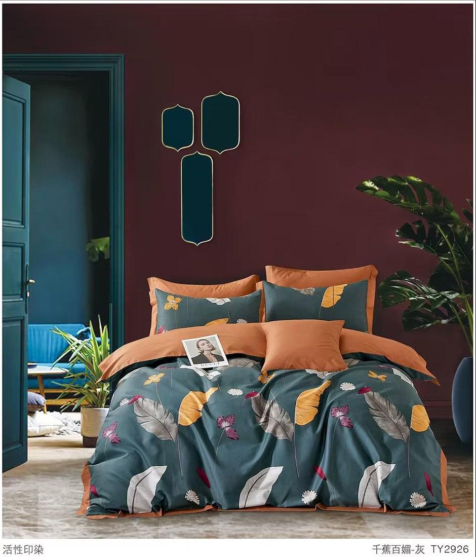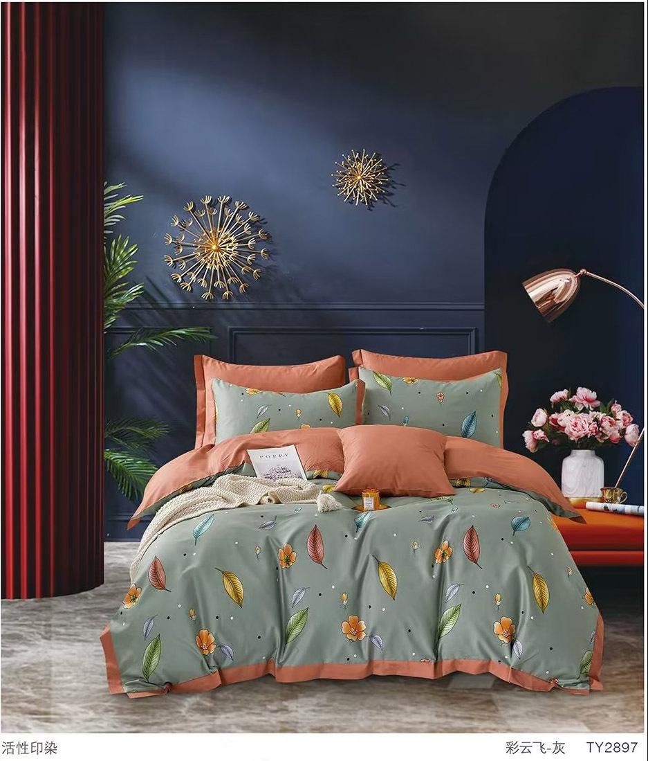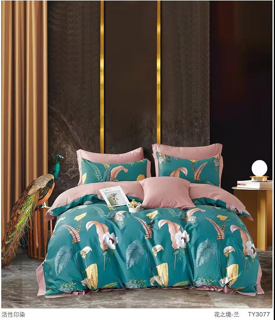 Set de cuatro piezas de algodón satinado de los años 50 con estampado digital reactivo de algodón de fibra larga