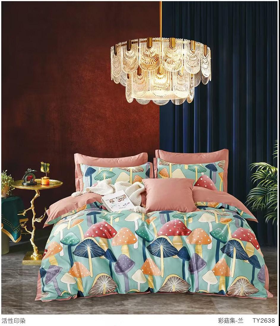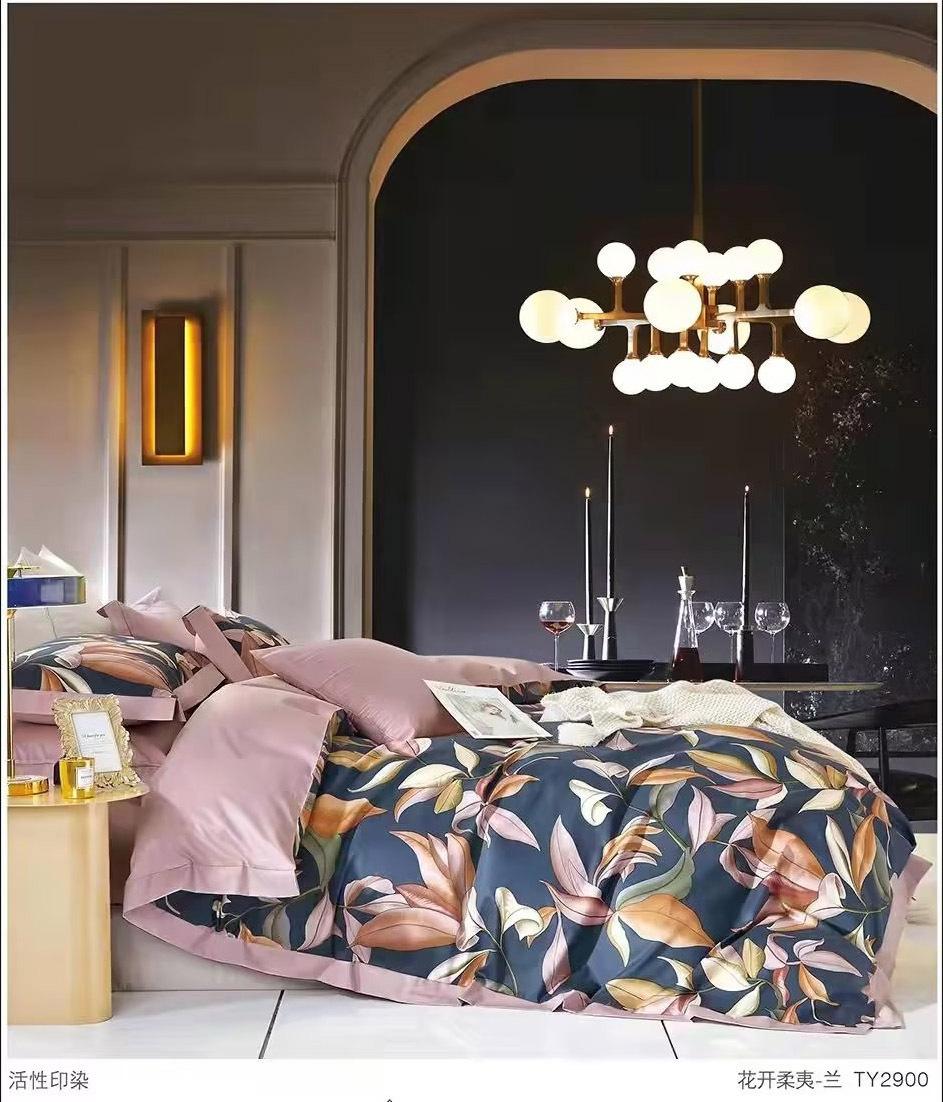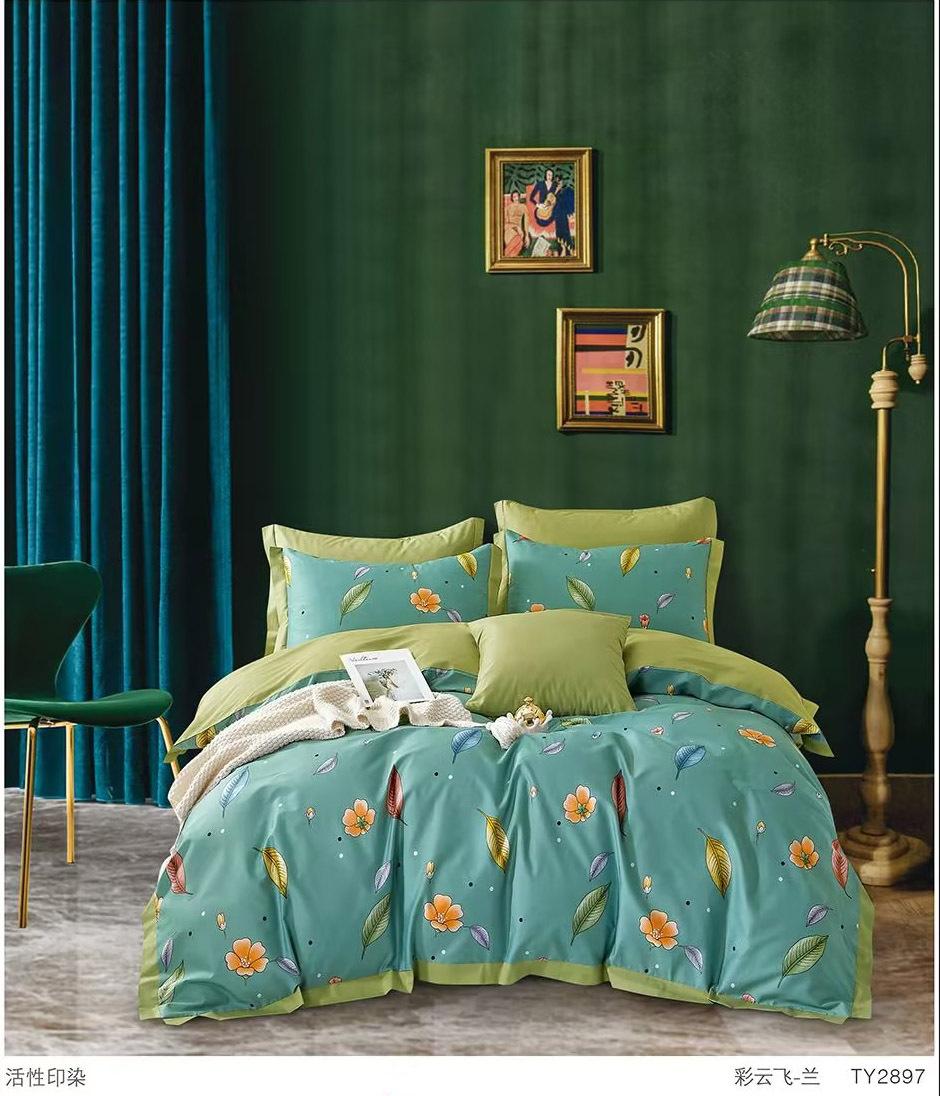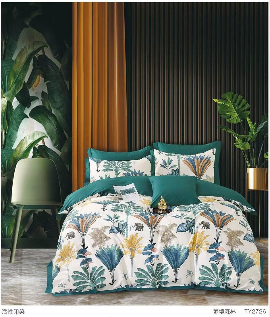 Set de cuatro piezas de algodón satinado de los años 50 con estampado digital reactivo de algodón de fibra larga