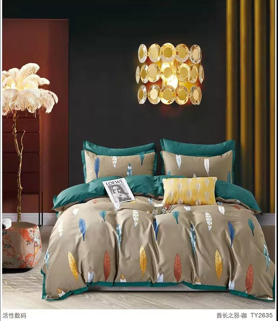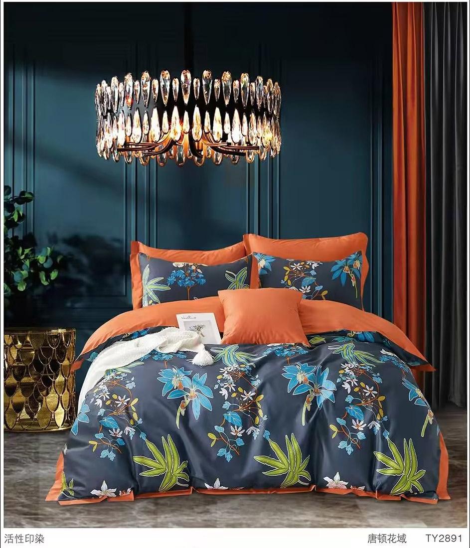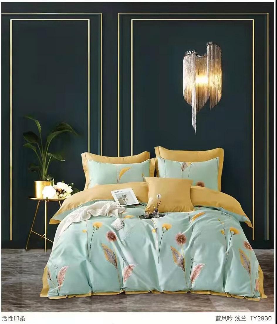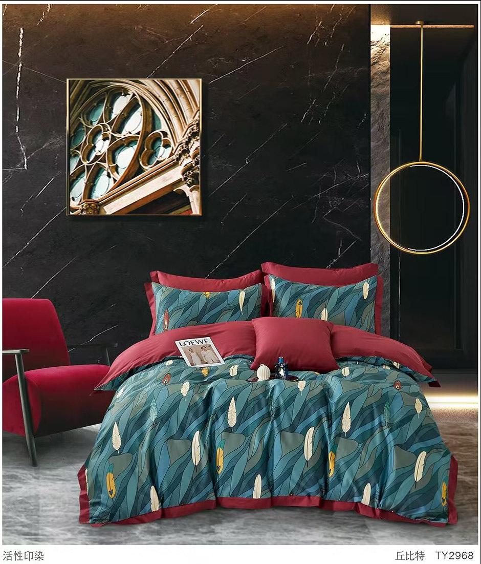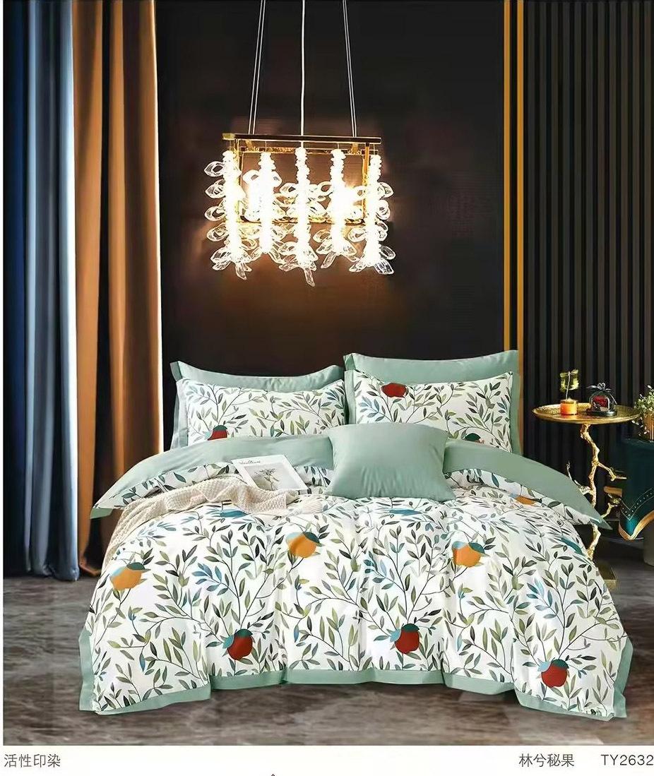 Set de cuatro piezas de algodón satinado de los años 50 con estampado digital reactivo de algodón de fibra larga
