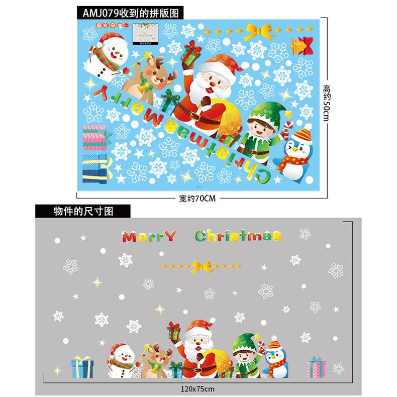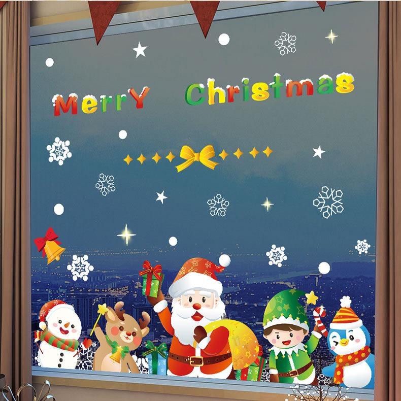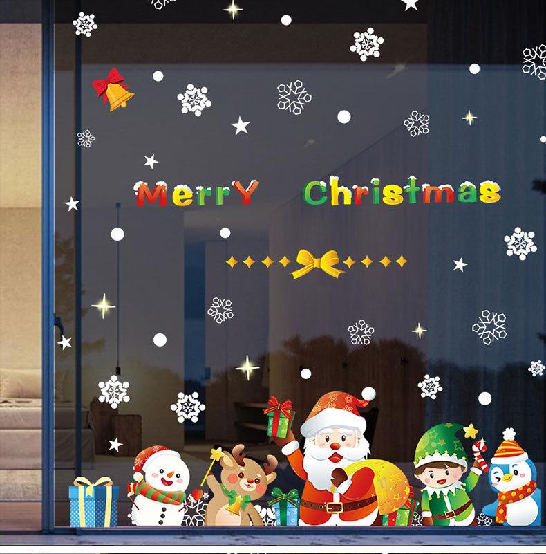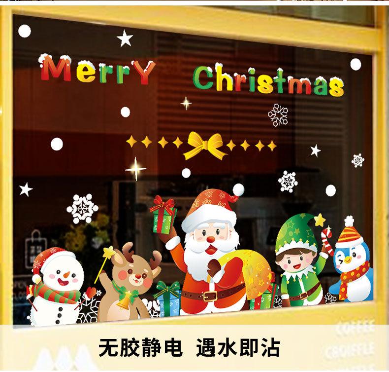 Pegatinas estáticas de Feliz Navidad, diseño de escena de ventana de vidrio de centro comercial navideño, pegatinas de Papá Noel, alce y muñeco de nieve