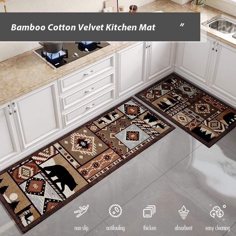 Alfombra de cocina transfronteriza retro larga, antideslizante, a prueba de aceite, impermeable, para puerta, resistente a las manchas, absorbente de aceite, alfombra