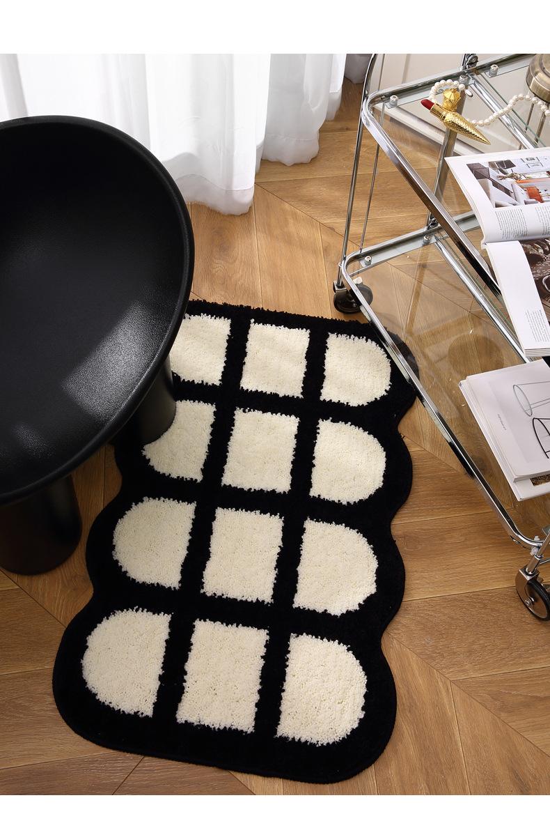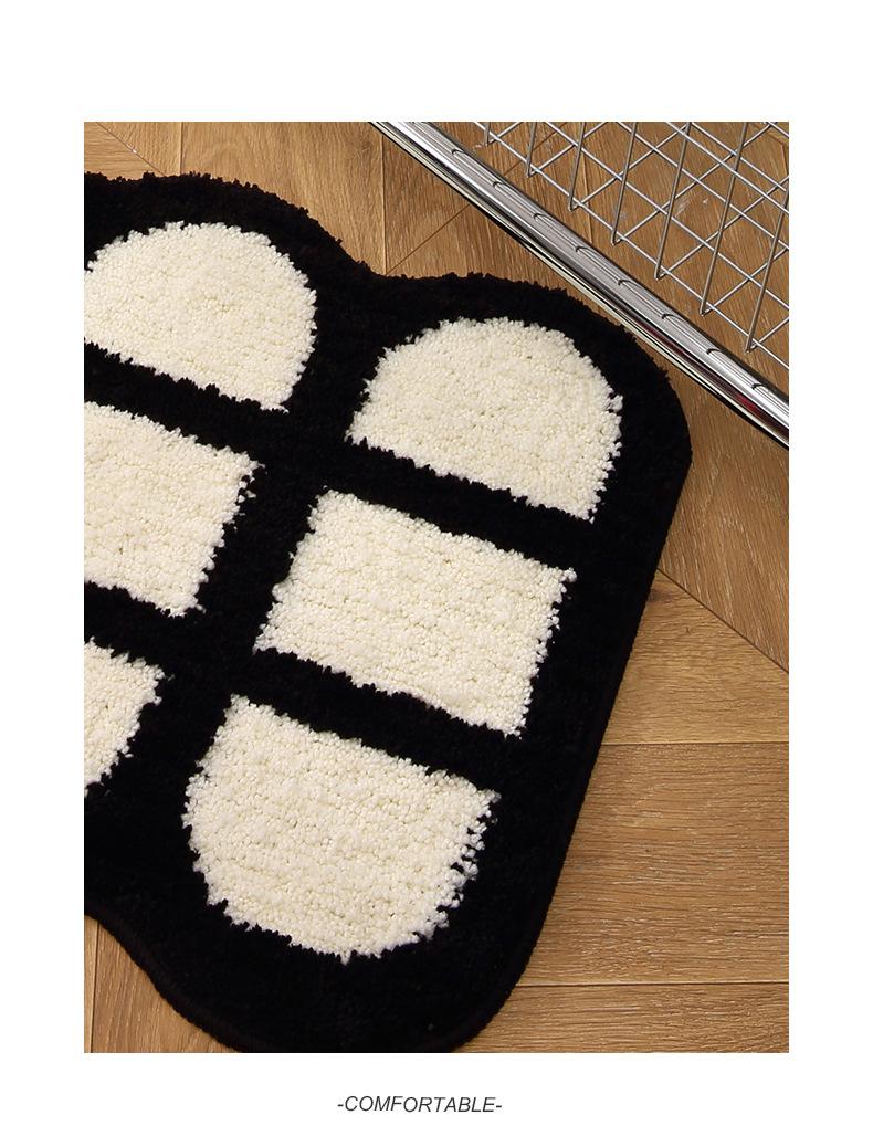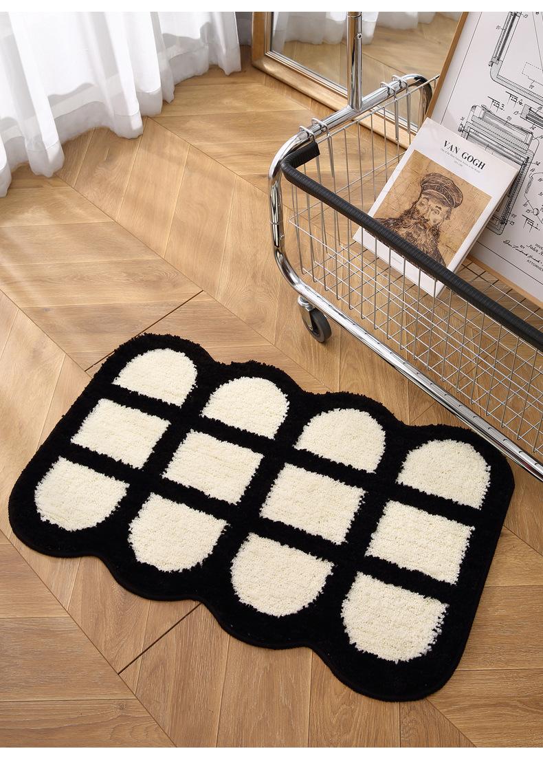 Alfombrilla absorbente para baño, antideslizante, estilo blanco y negro, con efecto flocado, gruesa