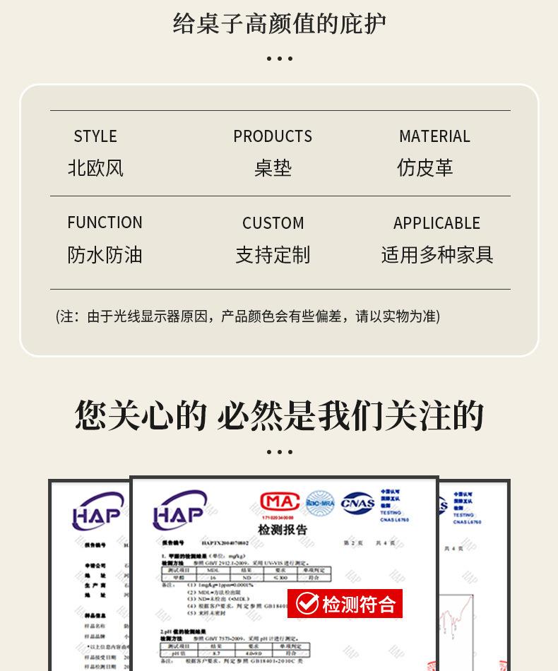 Mantel escandinavo casual impermeable y a prueba de aceite sin lavado PVC para el hogar anti-escaldaduras imitación cuero tapete para mesa de comedor rectangular mesa de centro mesa