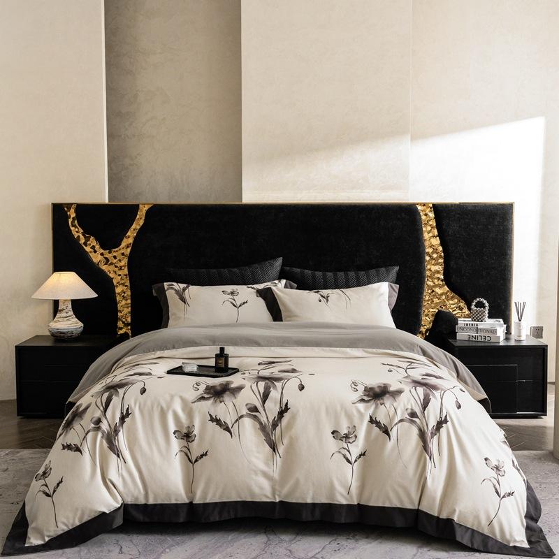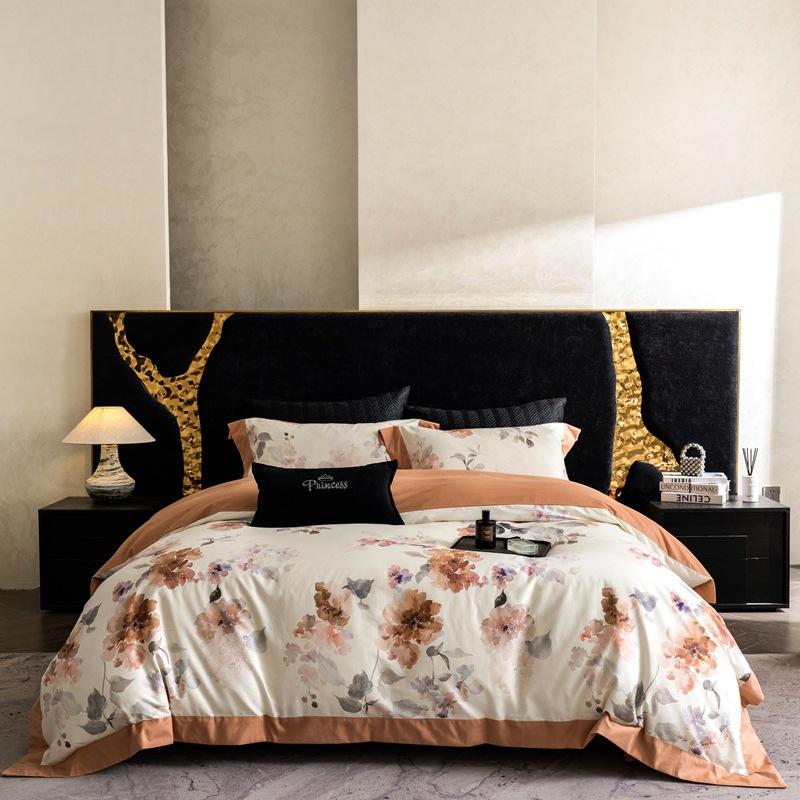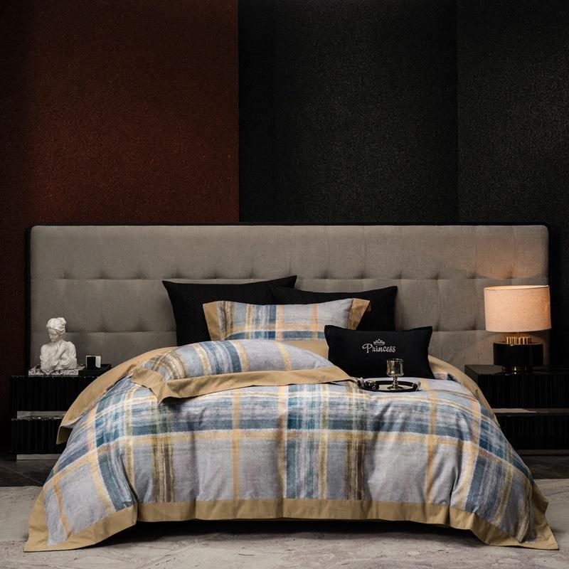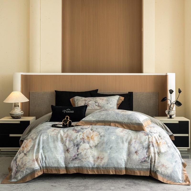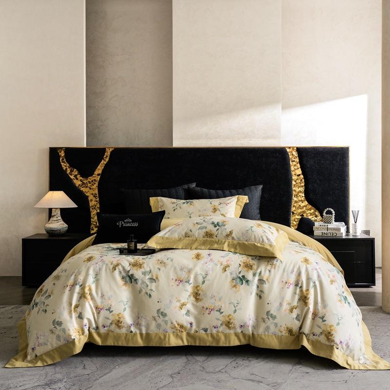 Lujo ligero 100% algodón de fibra larga juego de cuatro piezas de algodón funda de edredón cepillada de algodón juego de cuatro piezas de algodón algodón