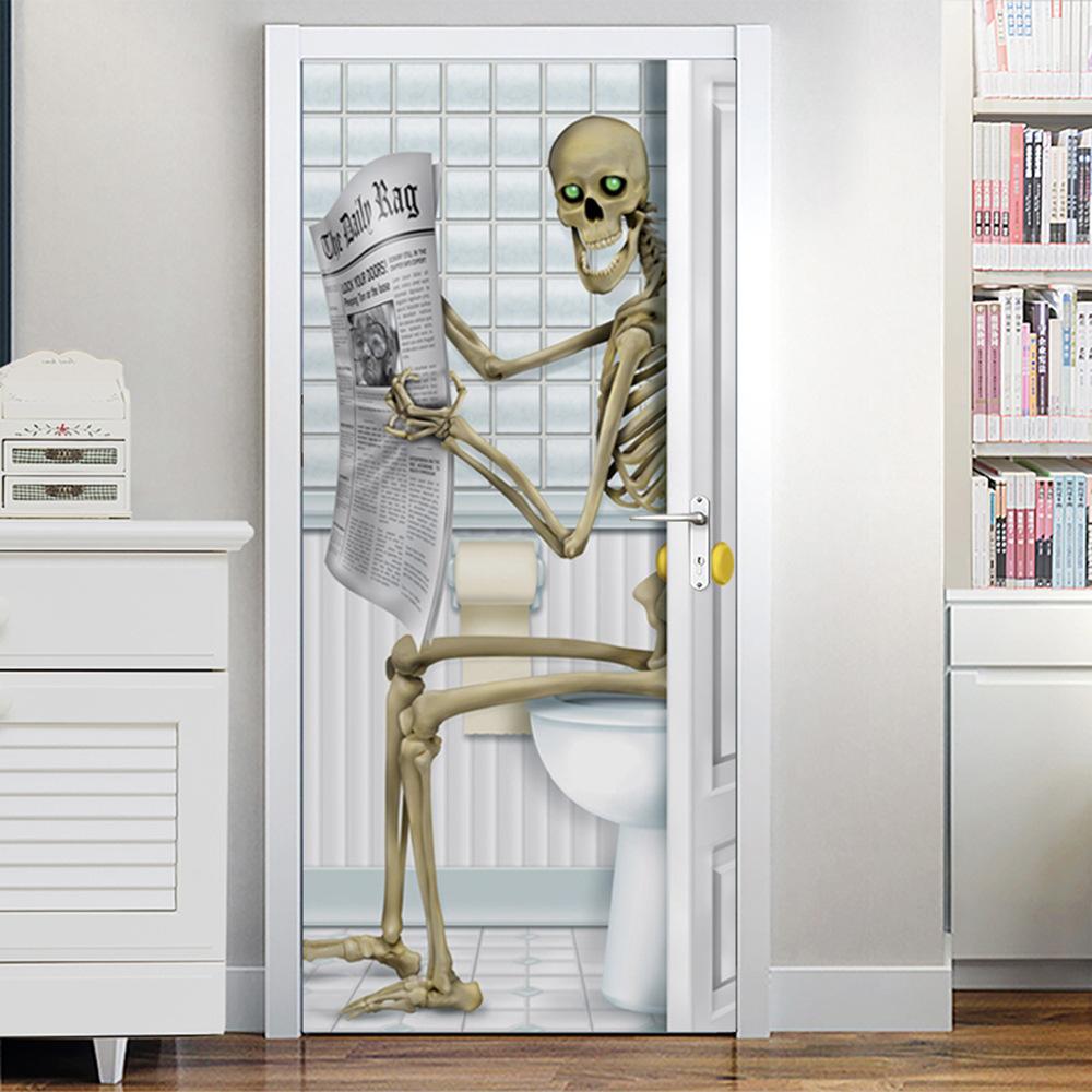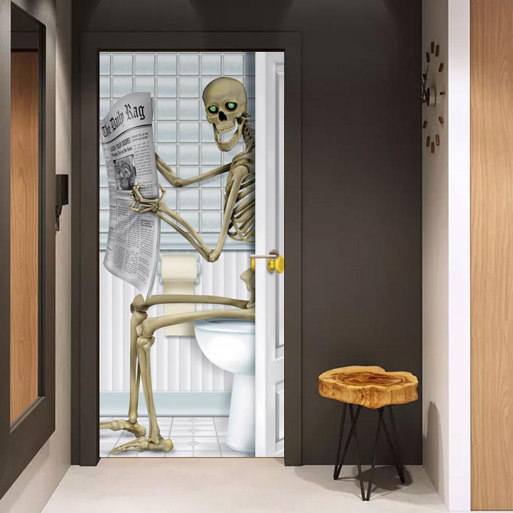 MT050-253 Halloween horror monja fantasma payaso 3D puerta pegatina puerta de madera decoración del hogar pegatina renovación pared pegatina