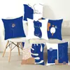 Funda de Almohada Fija Azul Almohada Lumbar para Silla de Oficina Hogar Dormitorio Almohada de Cabecera Patrón Geométrico Silla Simple