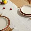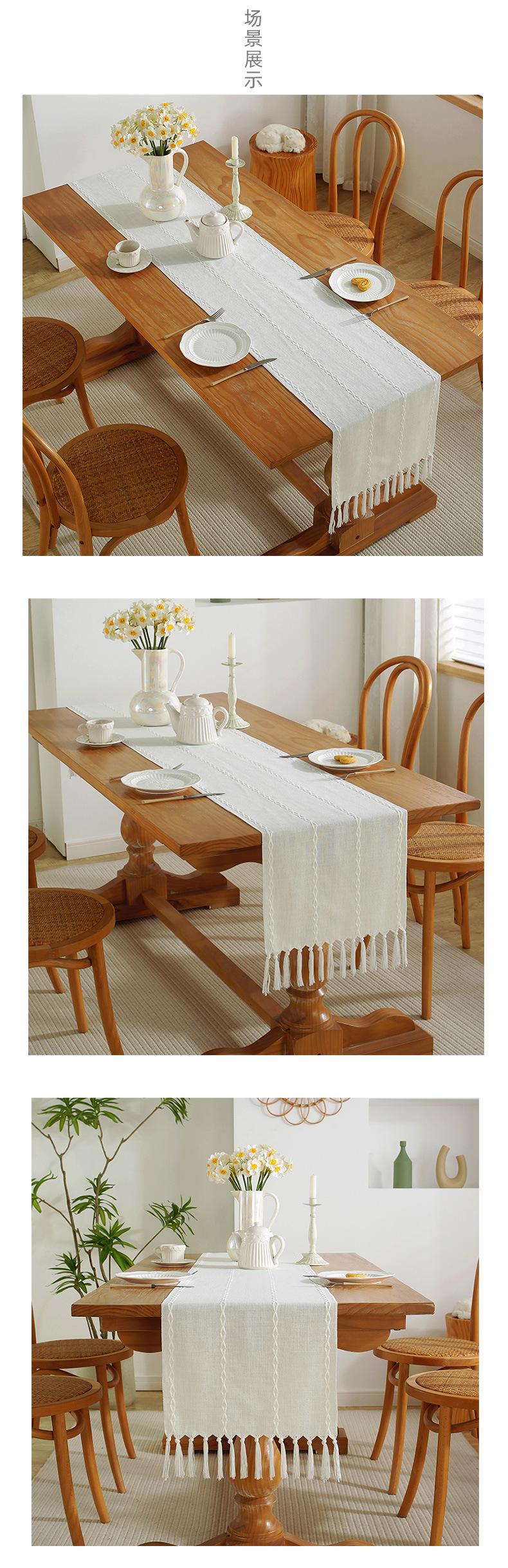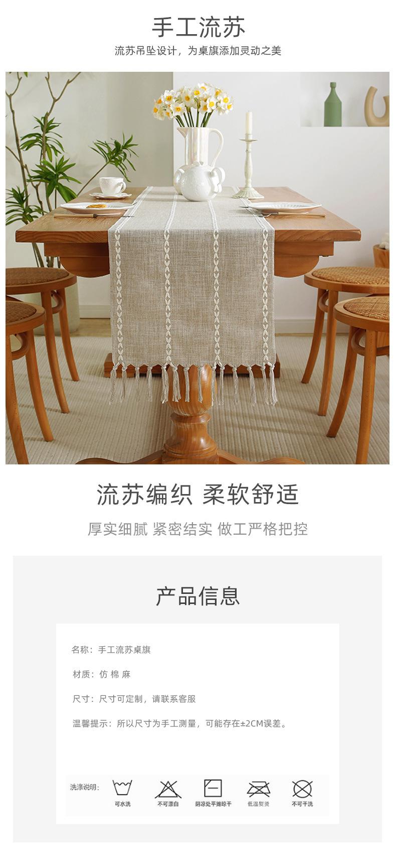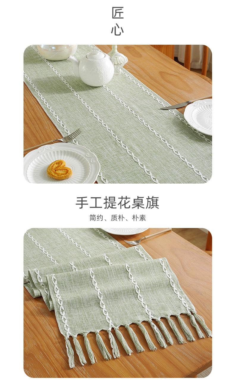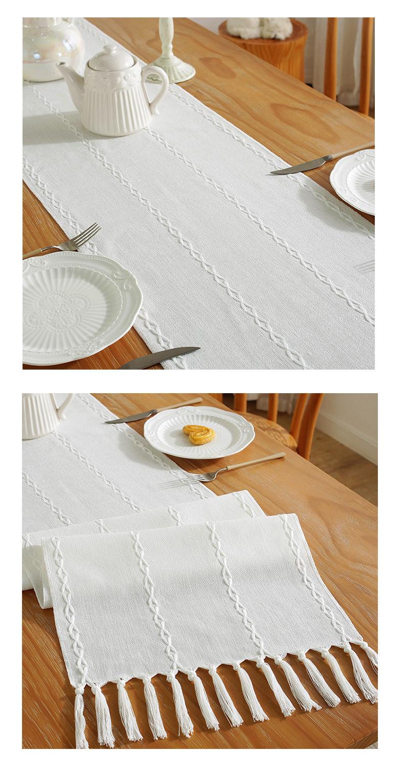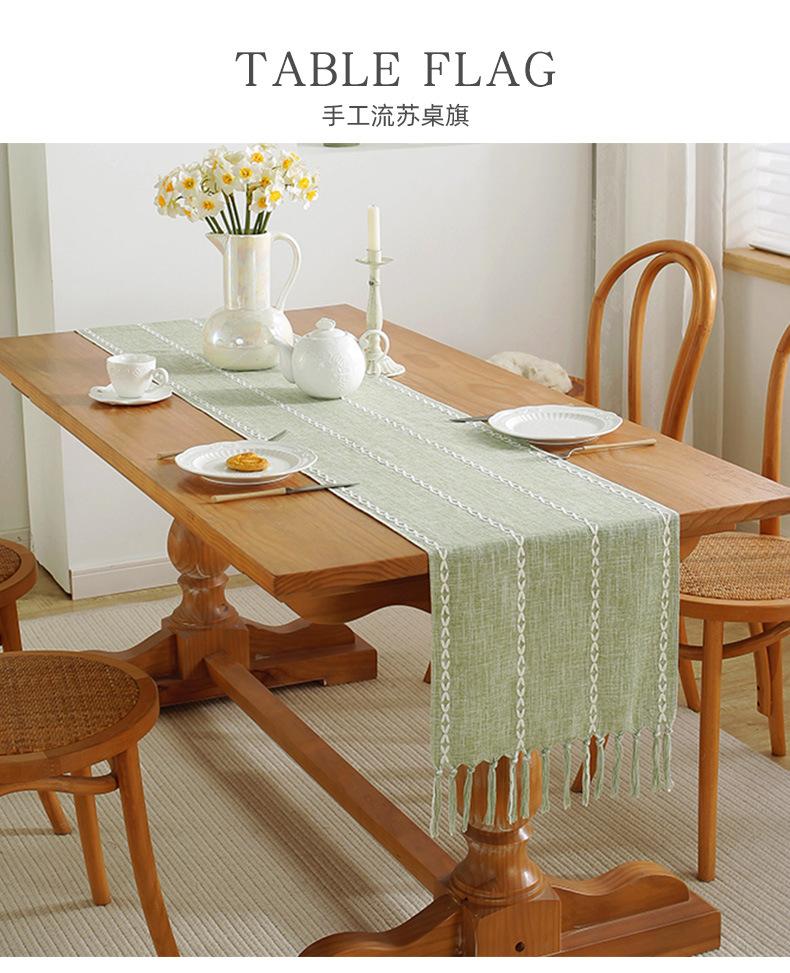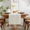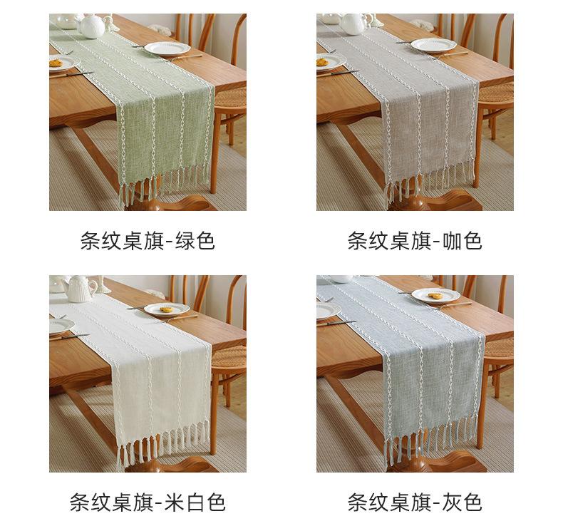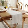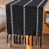 Camino de mesa nórdico simple a rayas de color sólido, tela de algodón y lino, hecho a mano con borlas, mantel para mesa de centro, mantel largo para el hogar