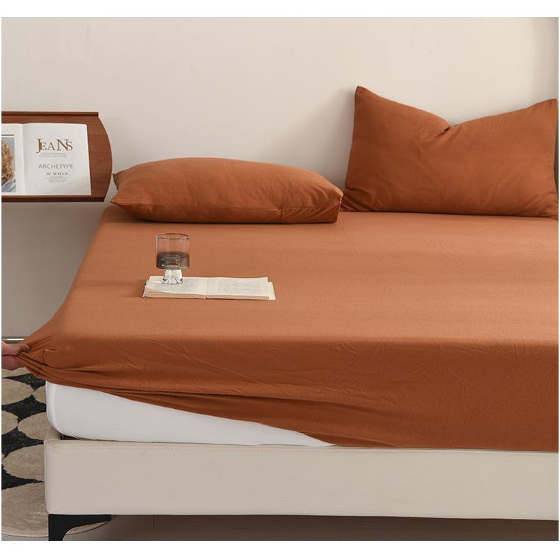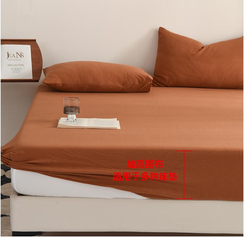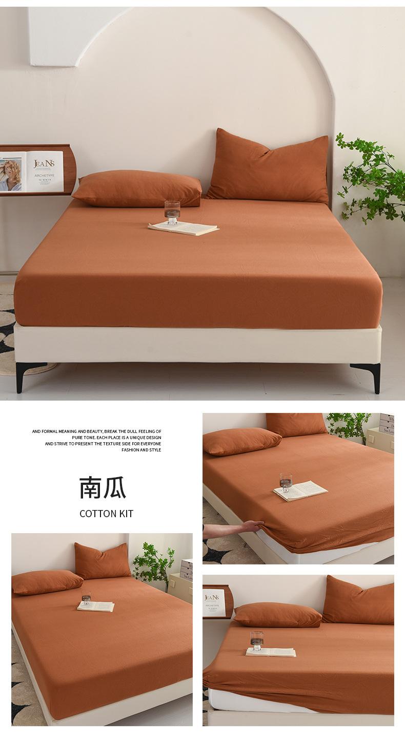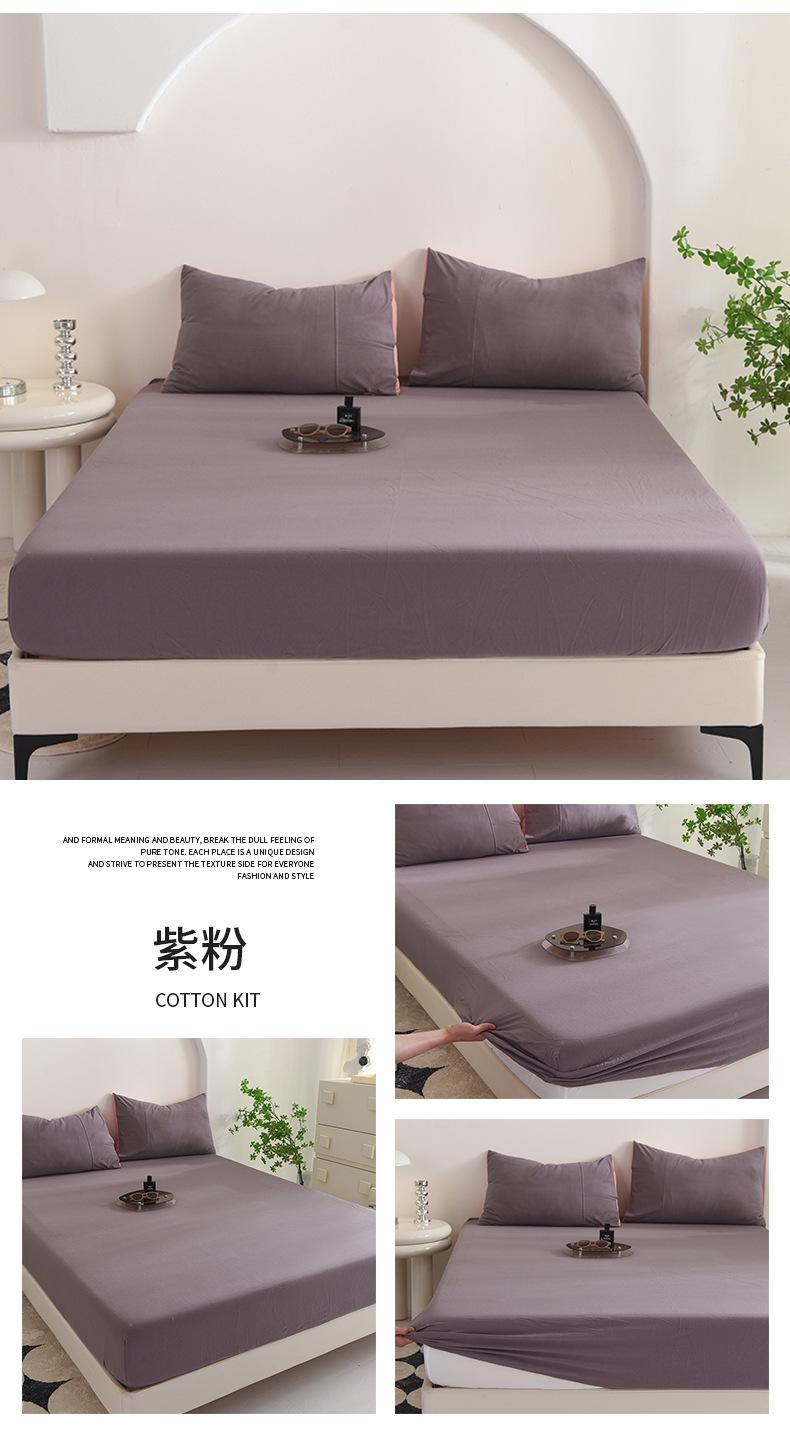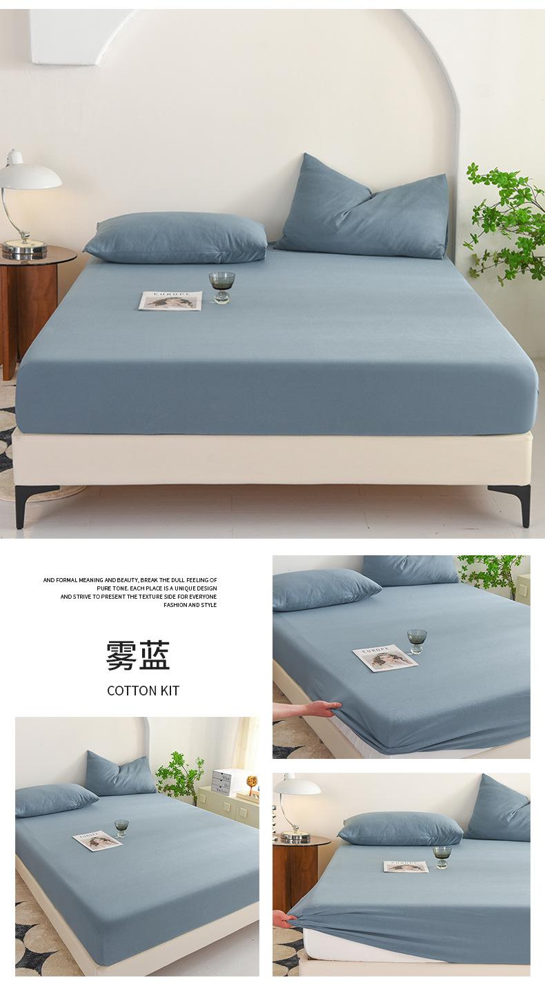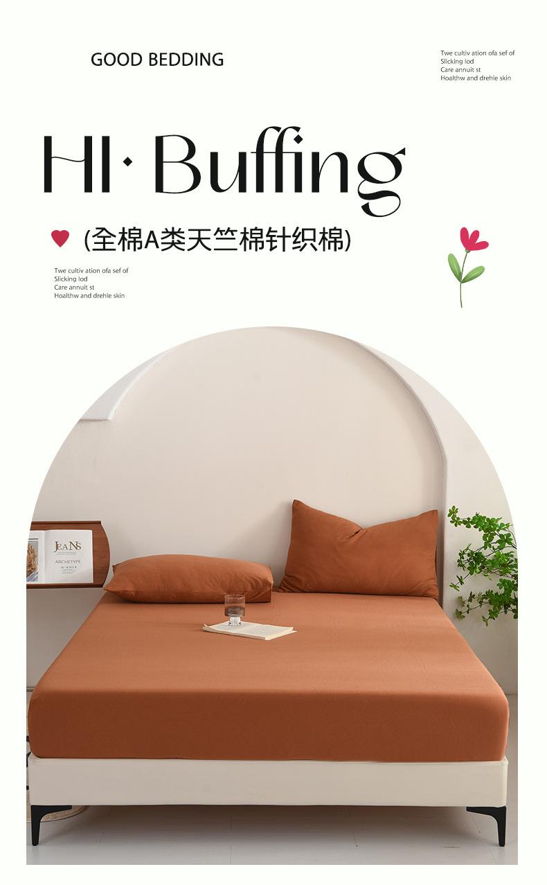 Juego de cama de cuatro piezas de algodón de punto suave de clase A, funda de edredón de algodón puro de color sólido con doble costura, sábana, funda de colchón de algodón Tianzhu