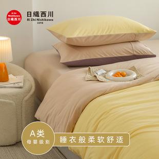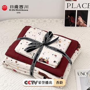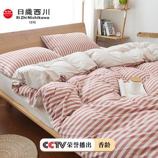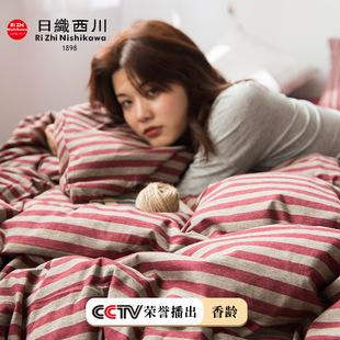 [Transmisión de CCTV] Conjunto de cuatro piezas de algodón Tianzhu 100% algodón tejido de algodón nude para dormir simple de color sólido a rayas de estilo japonés funda de edredón de algodón puro
