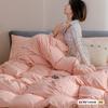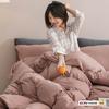 Conjunto de cuatro piezas de algodón Tianzhu de color puro de estilo japonés, ropa de cama para dormir desnudo de otoño e invierno, sábanas de algodón puro de punto, funda de edredón
