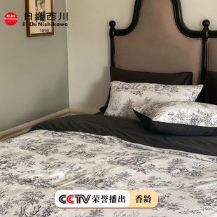 Juego de cuatro piezas de algodón Xinjiang Tianzhu de estilo francés de exportación, sábanas de punto de algodón australiano puro con estampado, funda de edredón y ropa de cama.