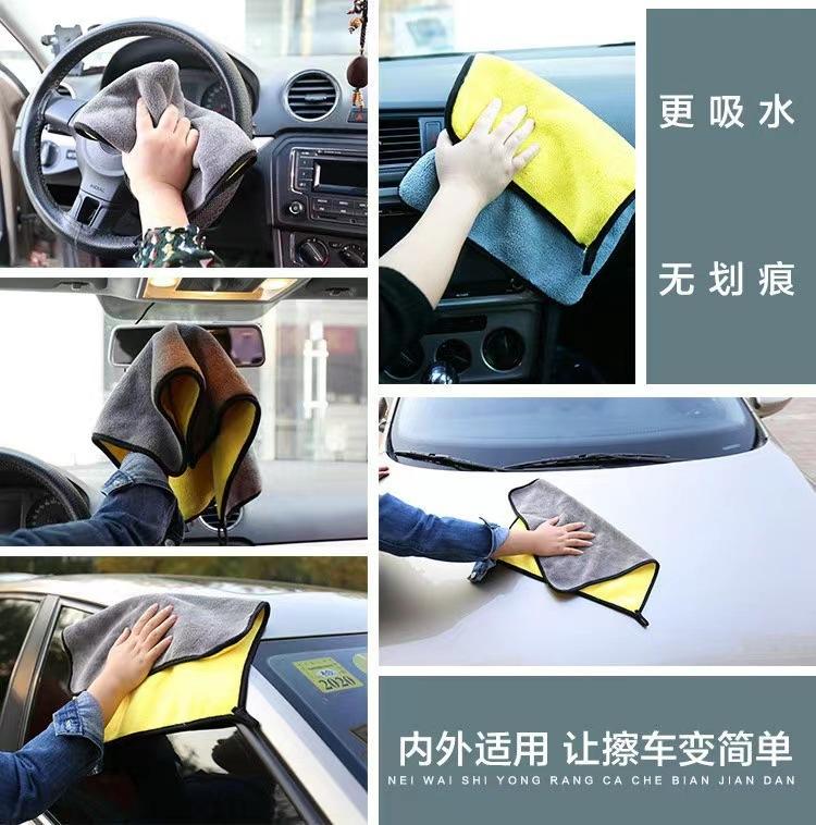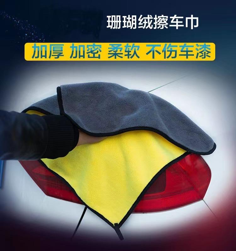 Toalla de lavado de autos gruesa, grande, absorbente, de vellón coral, de doble cara, de secado rápido, para limpieza de autos
