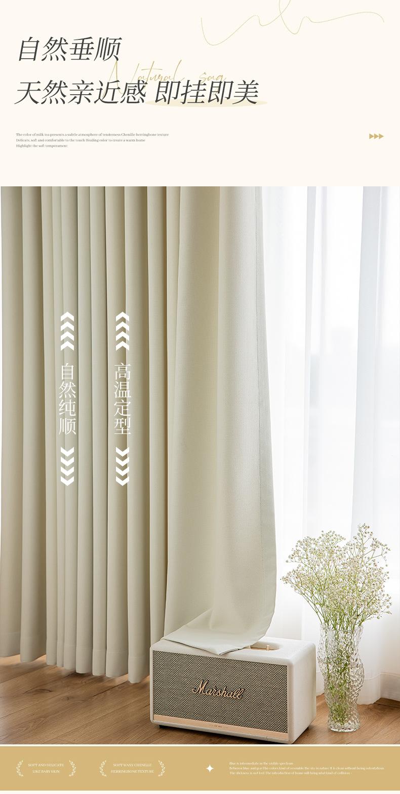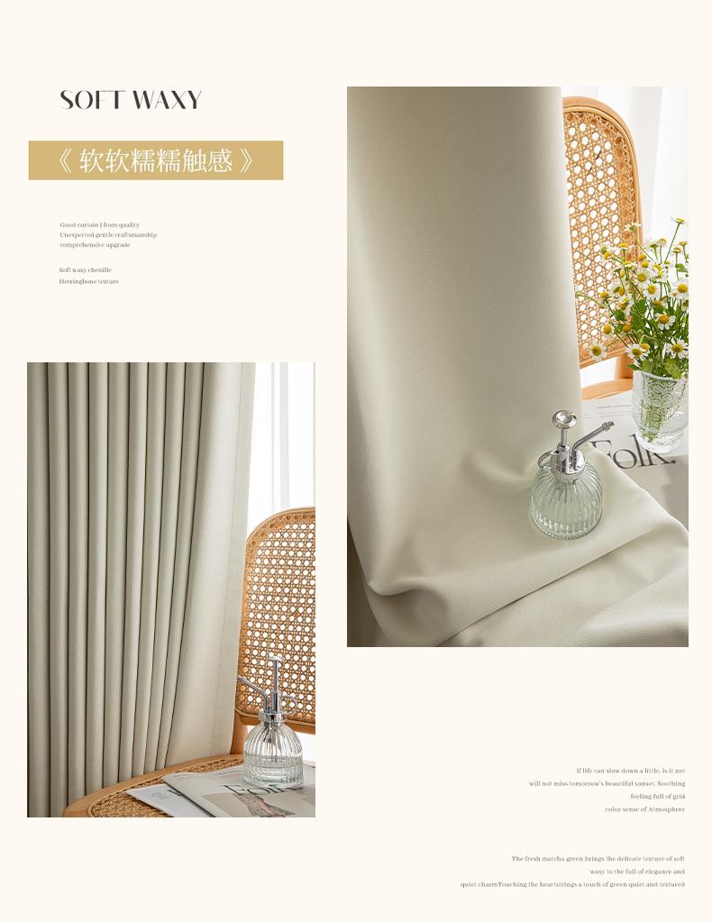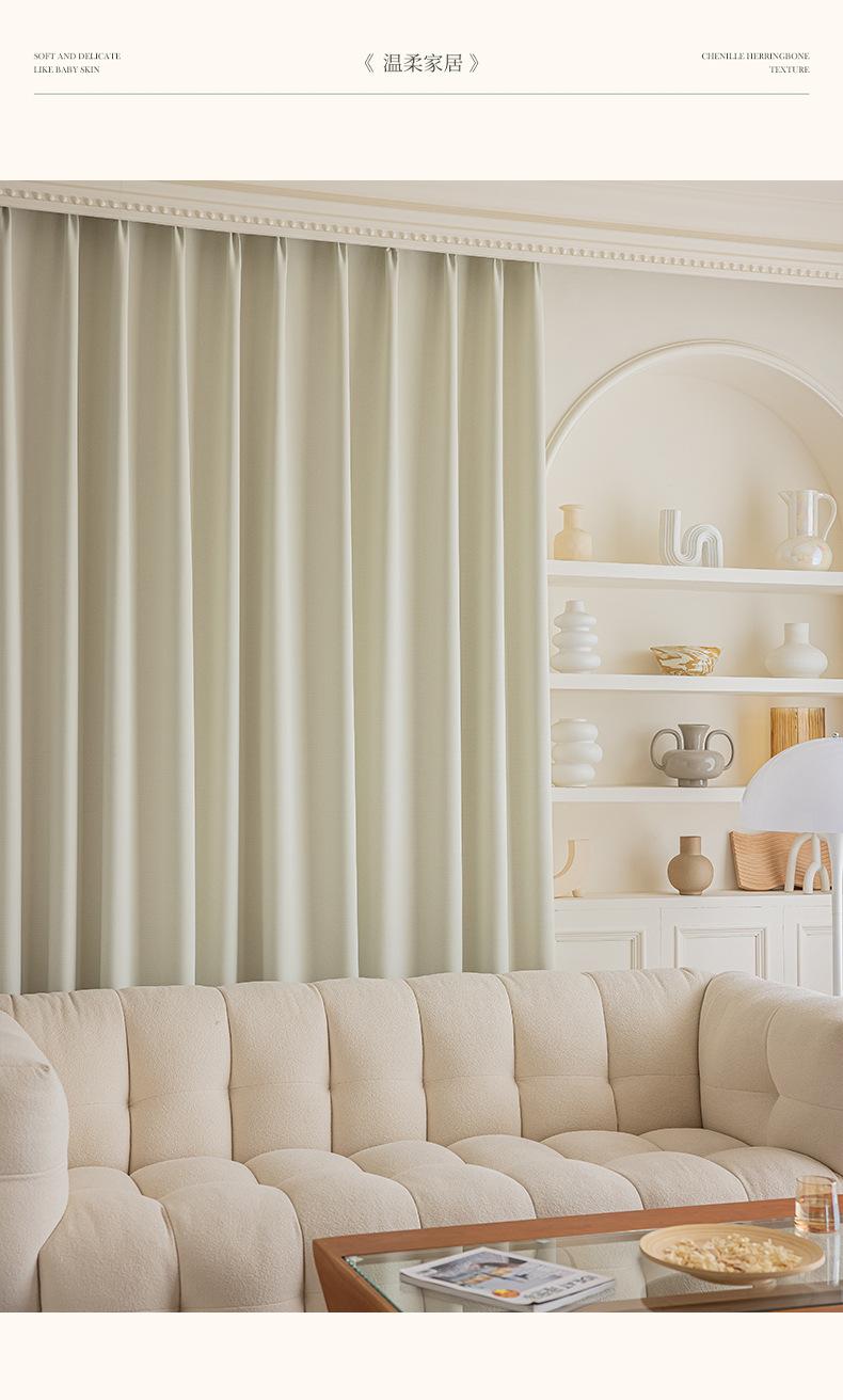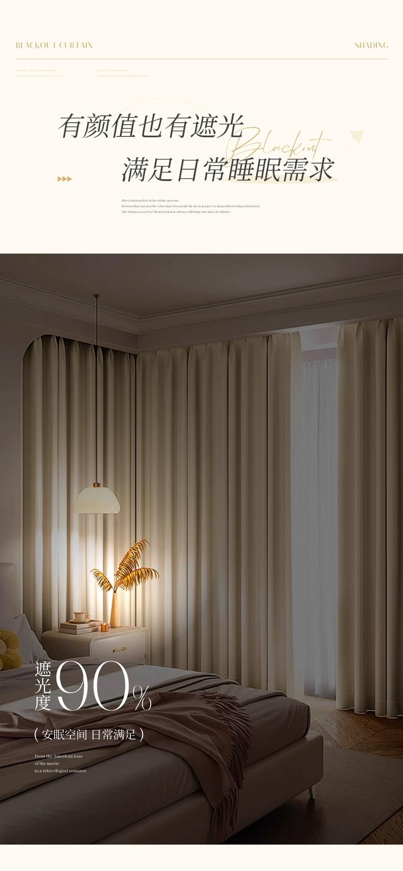 Color crema sombreado total Cortina Shaoxing algodón y lino jacquard tejido de cortina de lujo ligero cortina para dormitorio sala de estar protector solar producto terminado
